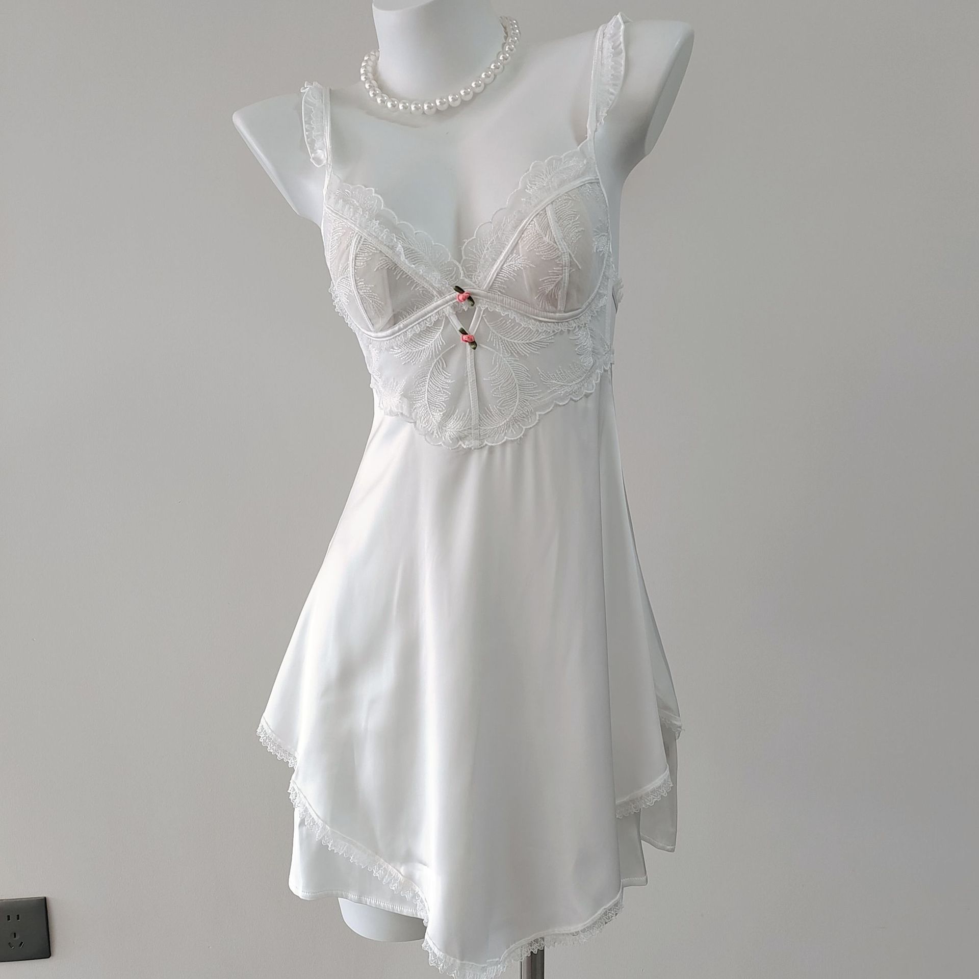 Churchf Churchf Lace Hollow With Chest Pad Sling Ice Spring And Autumn Cool Night Dress Beautiful High Sense Of Pajamas Female Pure Desire