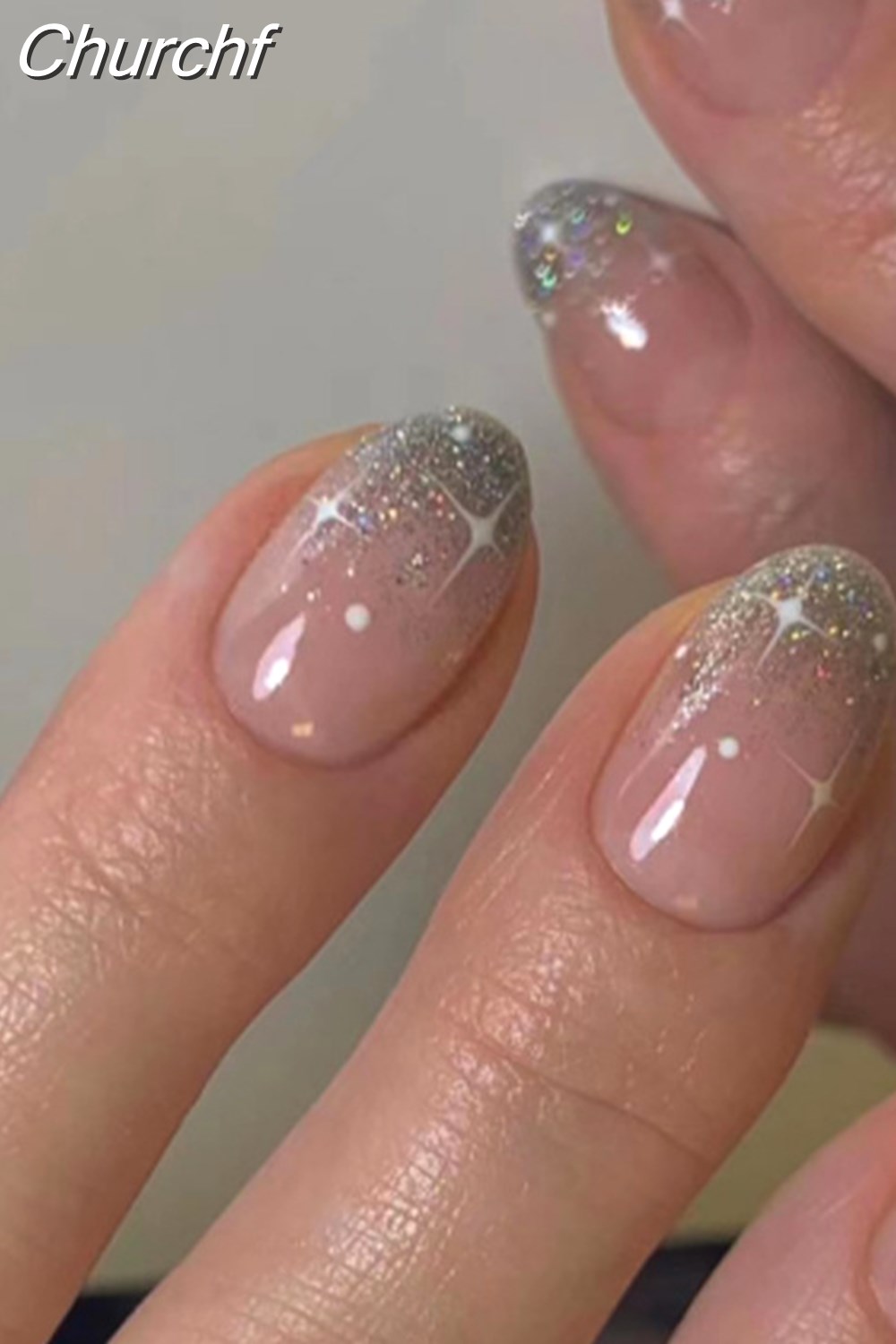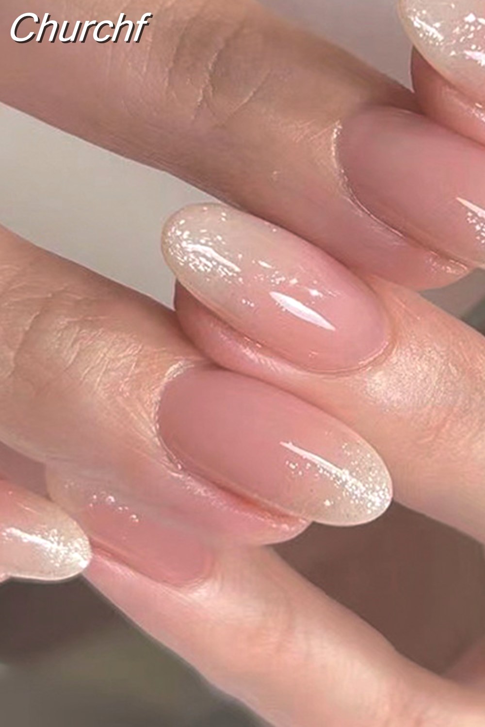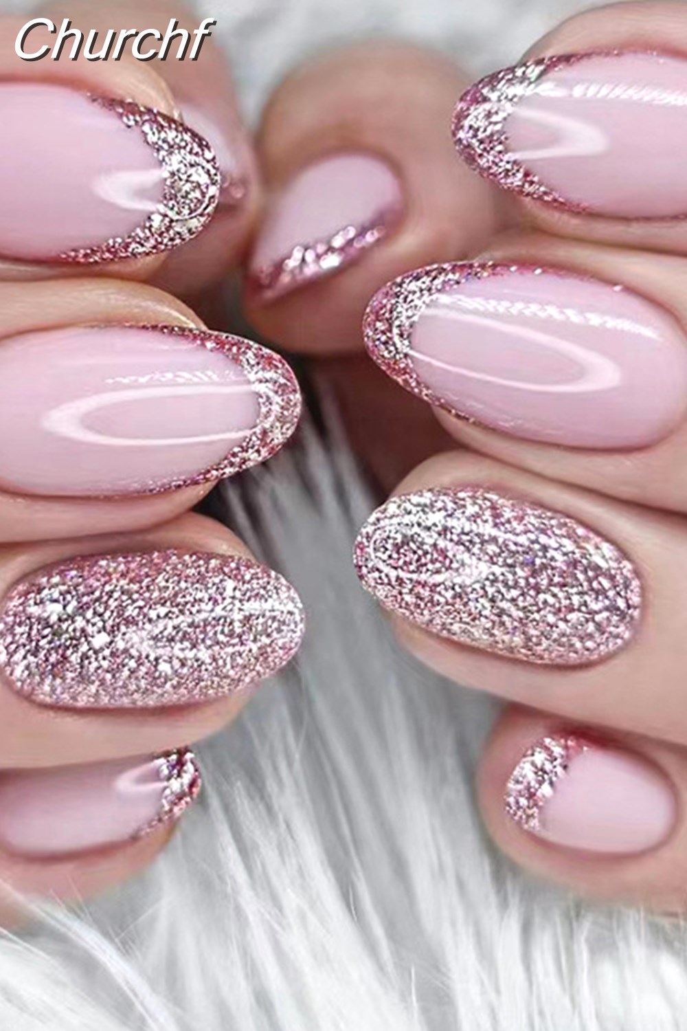 Churchf Glitter Short Almond False Nails Pink Aurora Ellipse Fake Nails Press on Nails DIY Manicure Detachable Full Cover Nail Tip 319-1-Nail Inspo