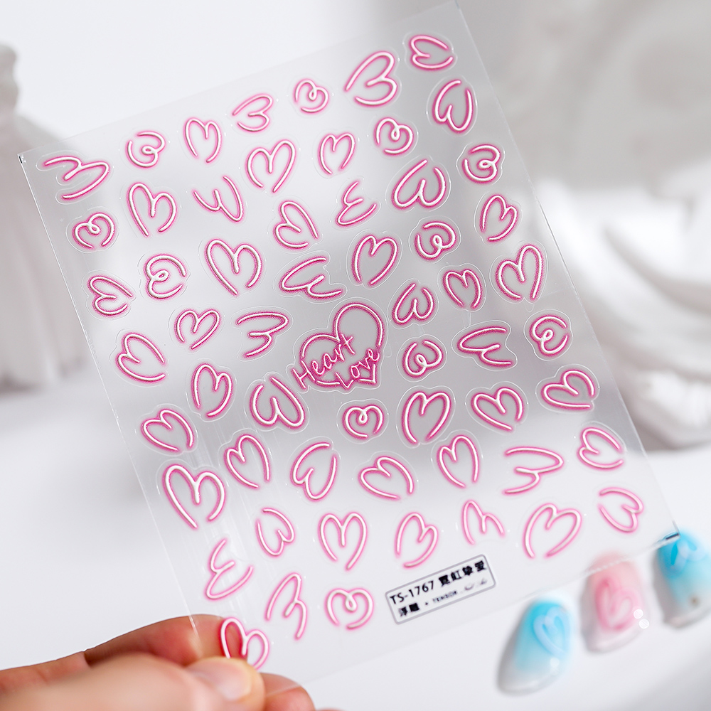 Churchf Nail Art Stickers Adhesive Sliders Pink Blue Heart DIY Line Nail Transfer Decals Foils Wraps Decorations Z0635-Nail Inspo