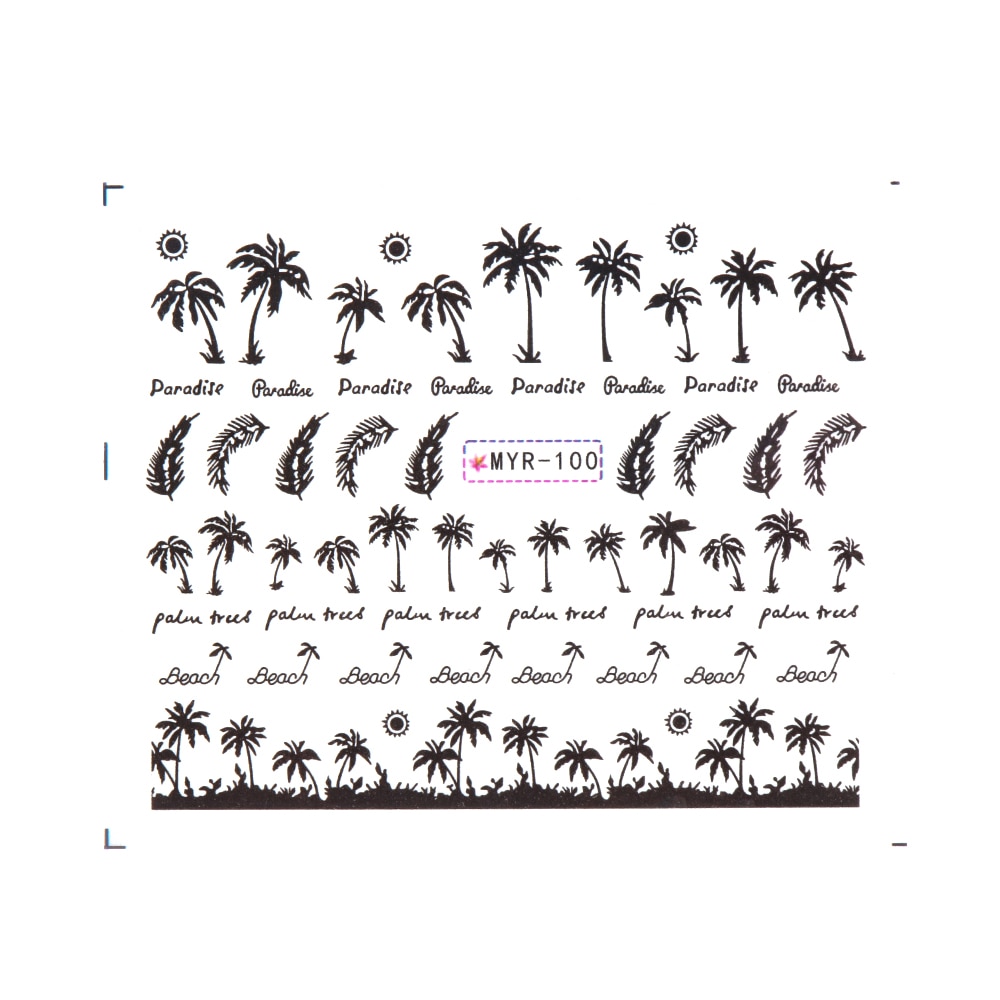 Churchf Palm Tree Coconut Tree Leaf Flower Design Nail Stickers Summer Nail Art Decoration Water Transfer Sliders For Nails DIY-Nail Inspo