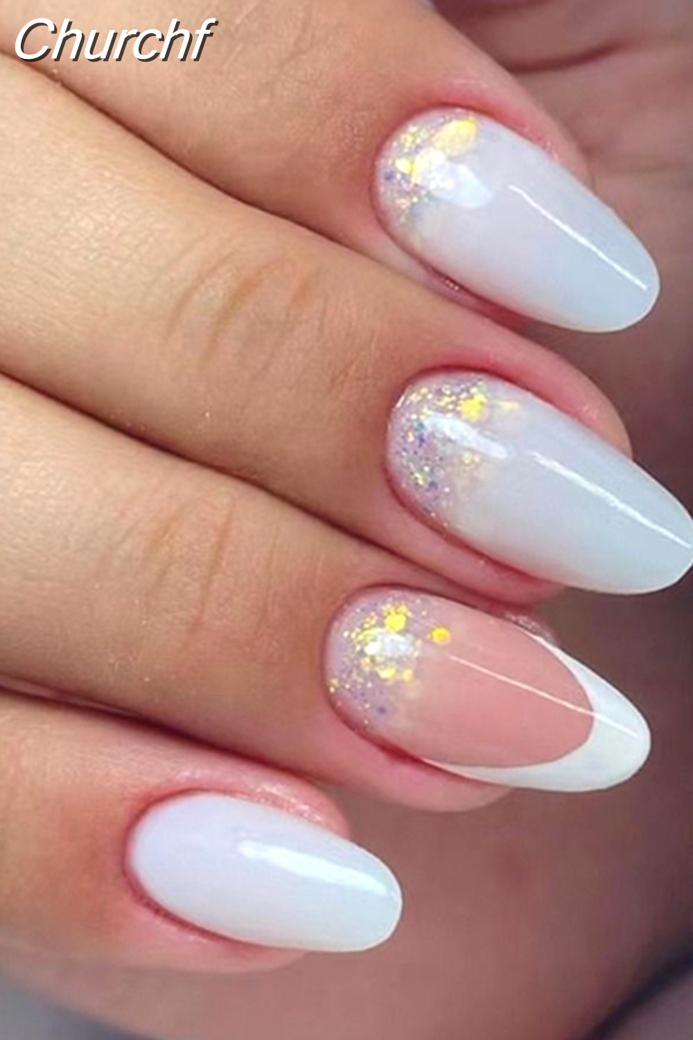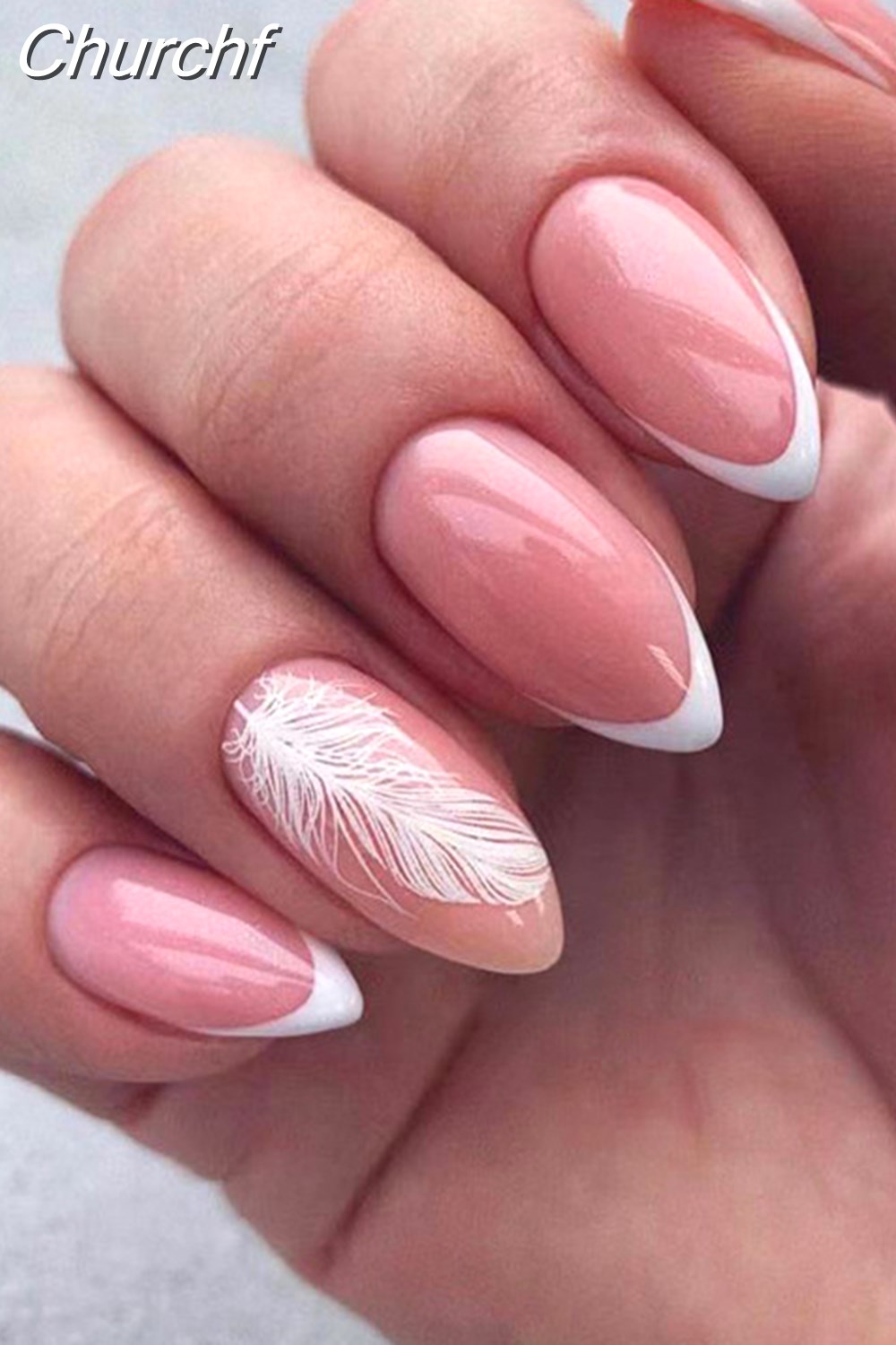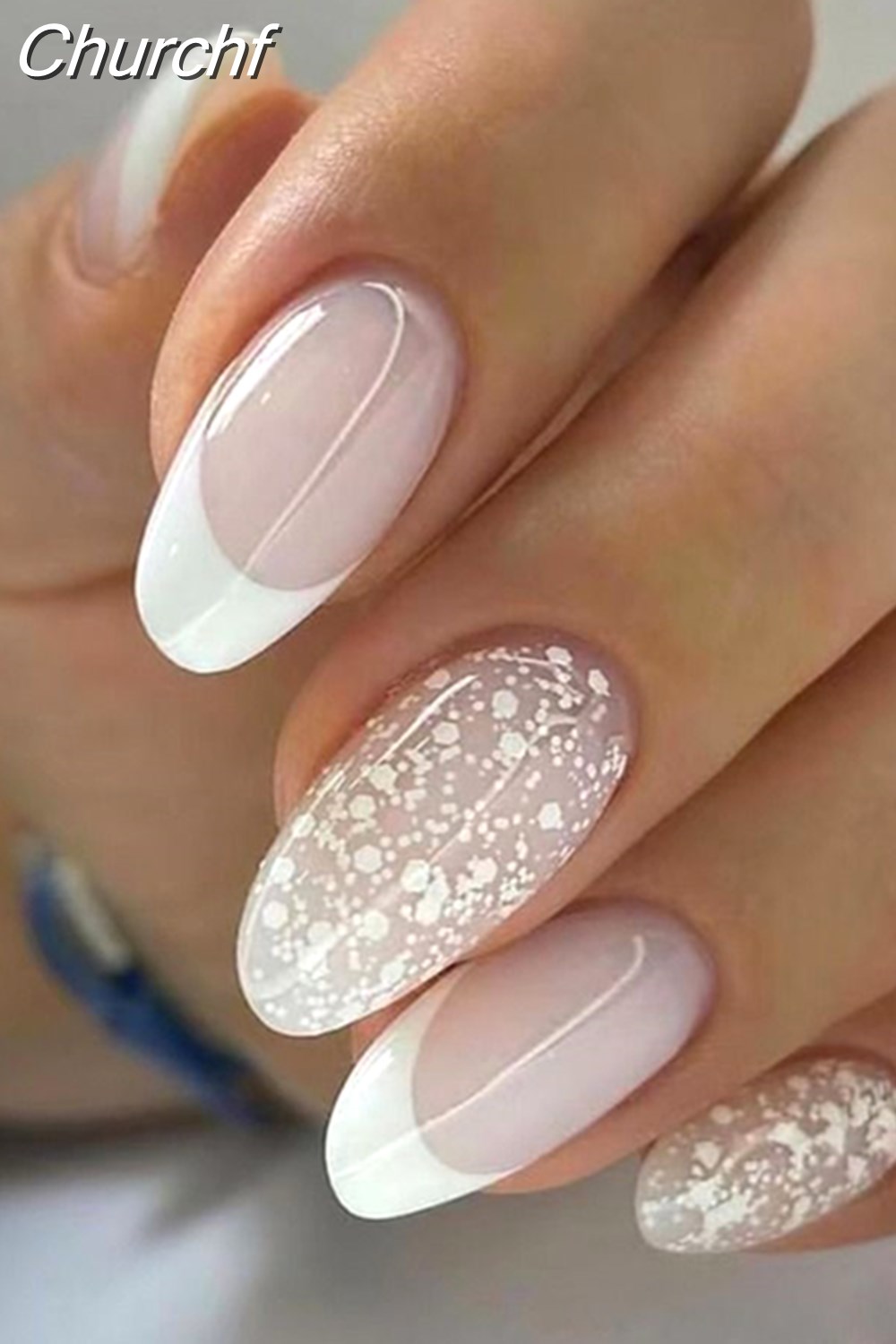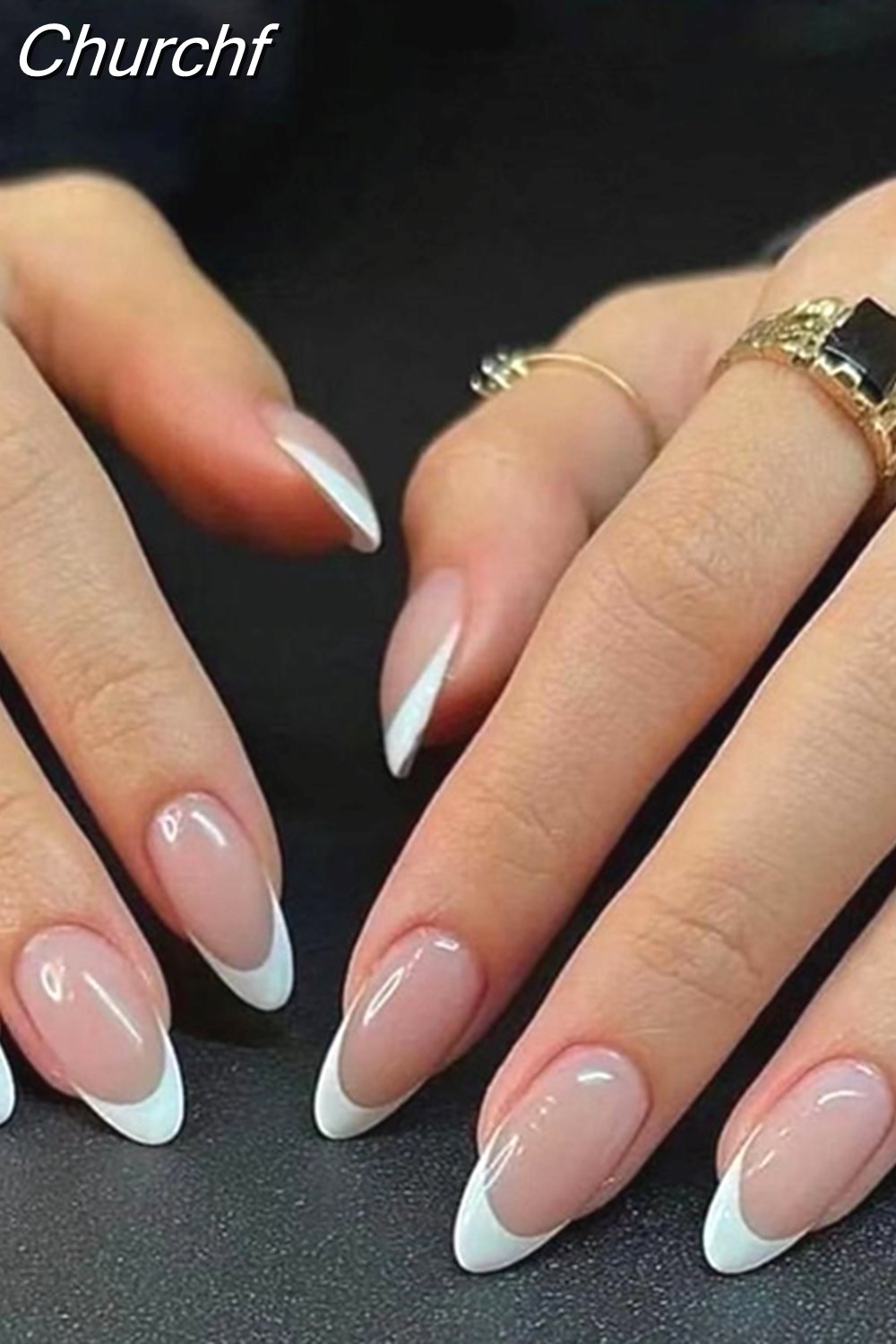 Churchf Simple False Nails Set White French Almond Fake Nails With Designs Press On Nails Manicure Full Cover Nail Tips-Nail Inspo