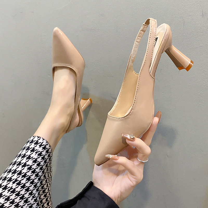 Churchf Version Of High-Heeled Solid Color High-Heeled Sandals Baotou Empty Cover High-Heeled Shoes Pointed Fashion Spot High-Heeled Shoes