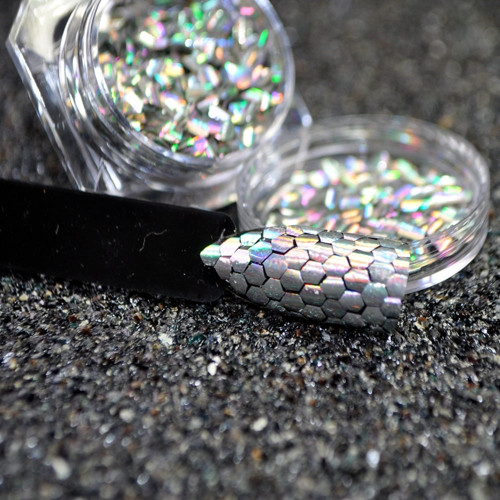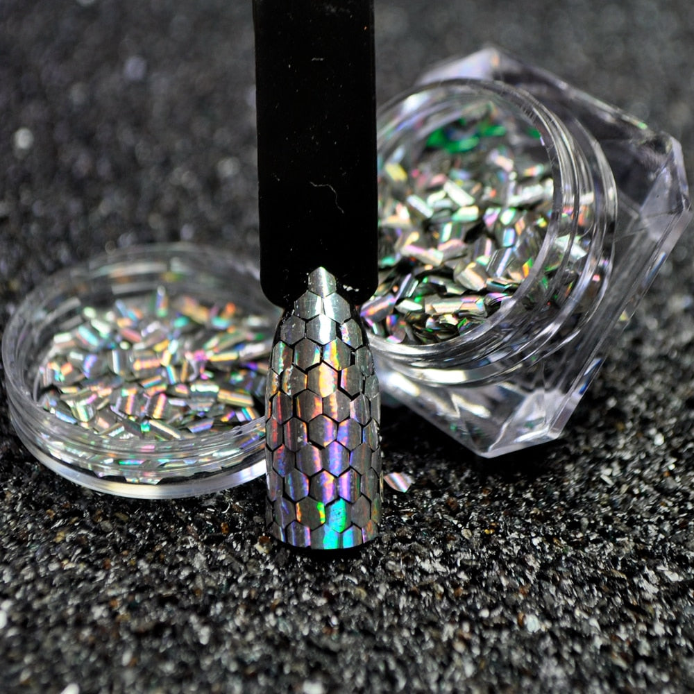 1 box Fish Scale Nail Sequins Holo Silver Mermaid Hexagon Glitter Sheets Bent Curve Bottom Manicure Nail Art Tips Decorations-Nail Inspo