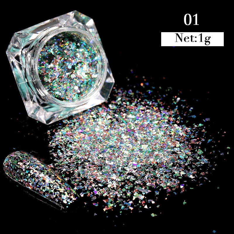 1 Box Iridescent Nail Powder Silver Black Colorful Glitter Sequins Gel Polish Flakes Nail Art Decoration For Manicure Pigment-Nail Inspo