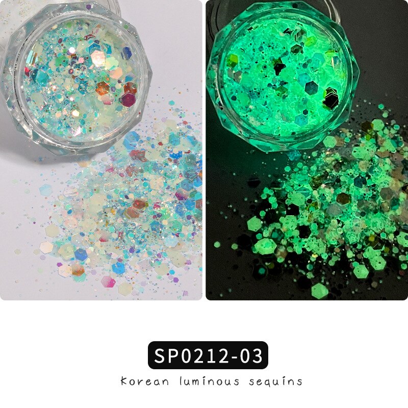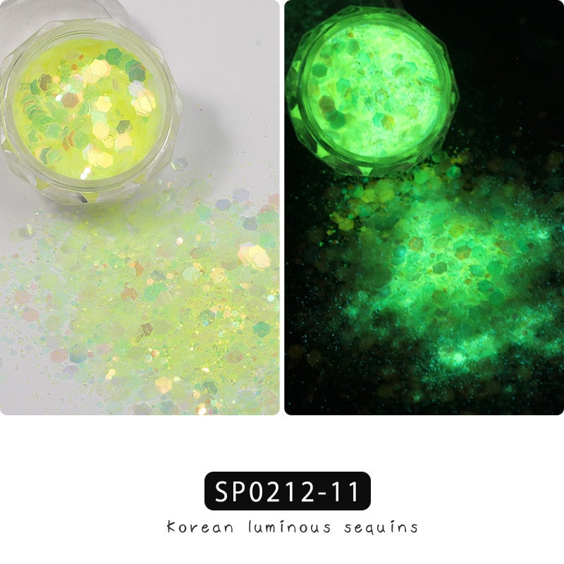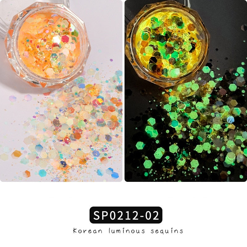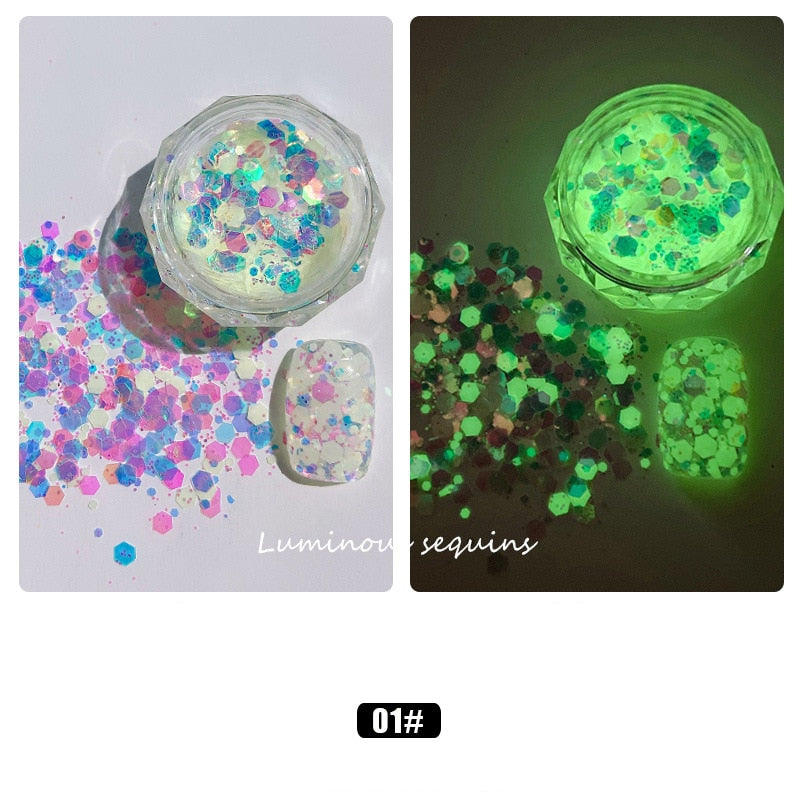 1 Box Luminous Nail Glitter Neon Hexagon Fluorescent Flake Glow in the Dark Sequin Nails Art Decorations Manicure Accessories-Nail Inspo
