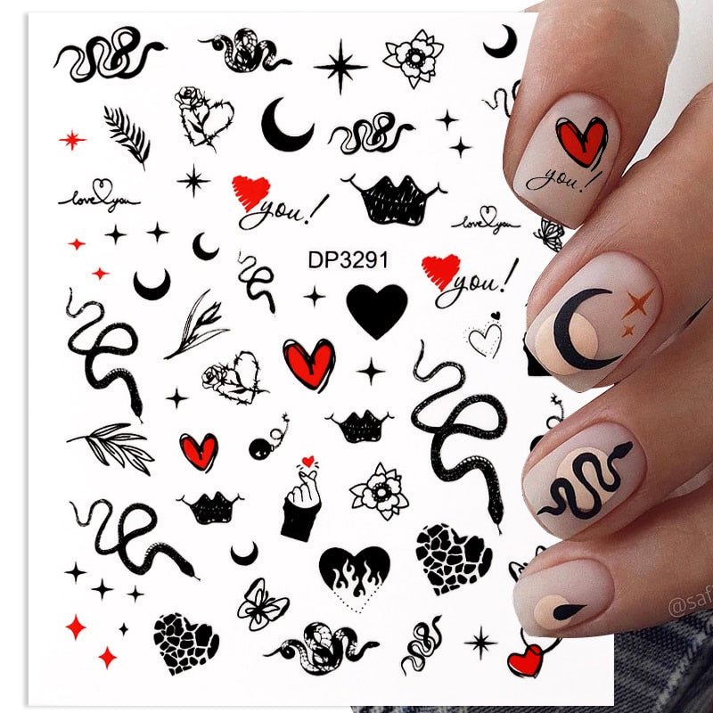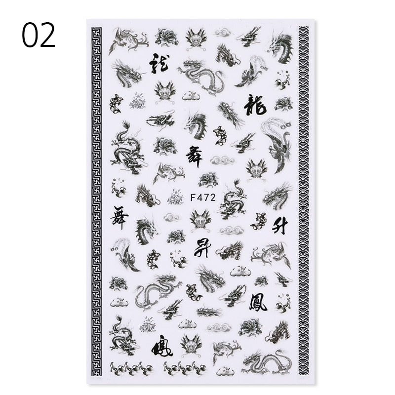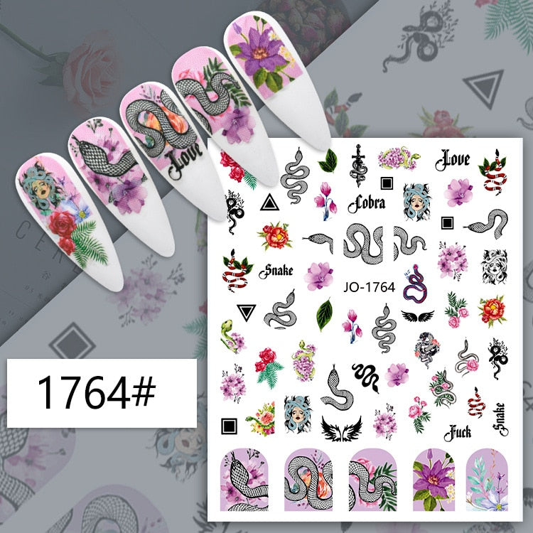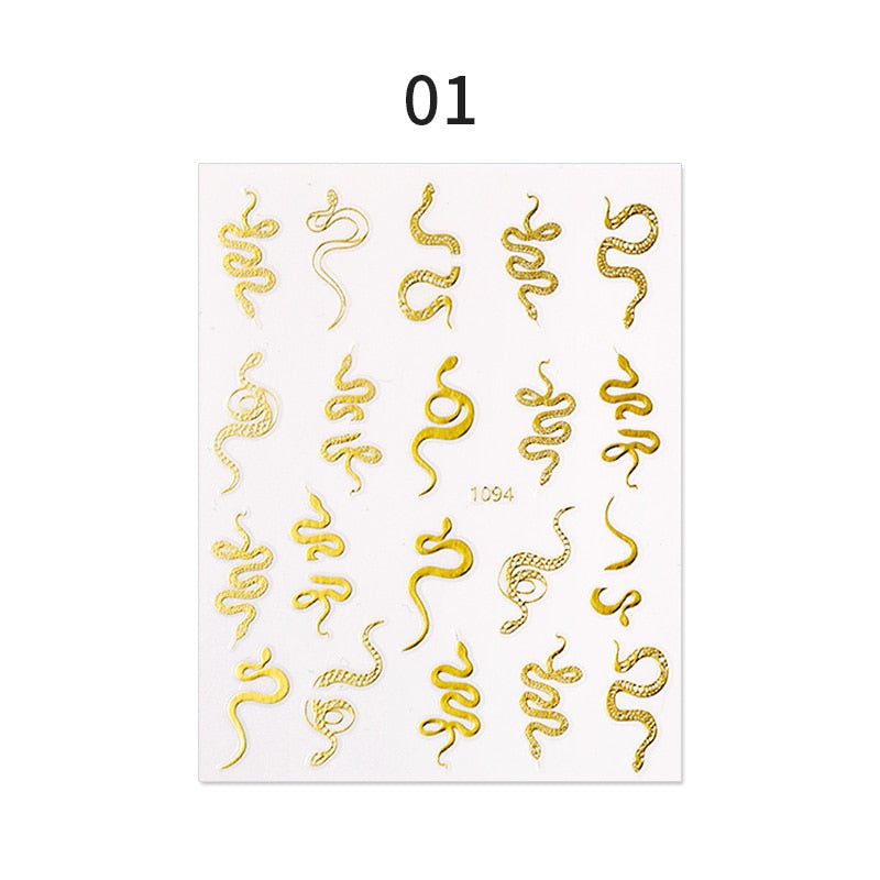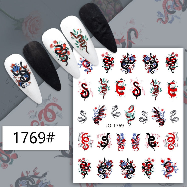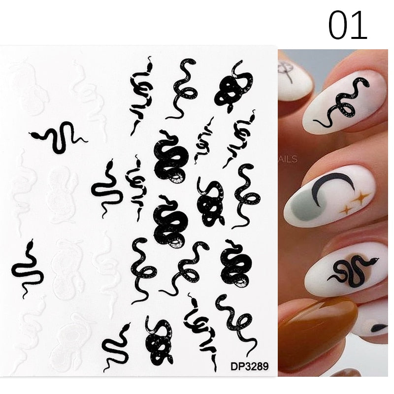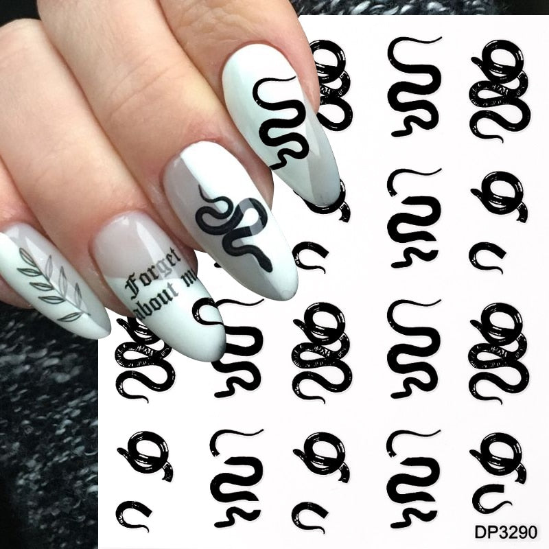 1 Pc Black Snake 3D Nail Stickers for Nails Geometry Animal Texture Design Manicure Dragon Nail Art Decals Sliders DIY Decor-Nail Inspo