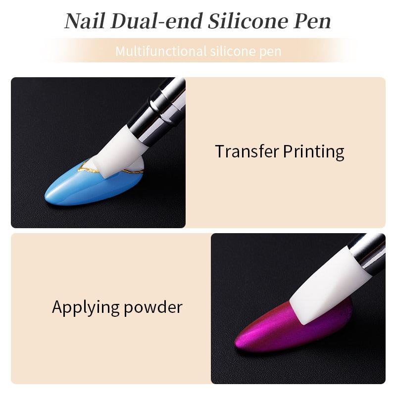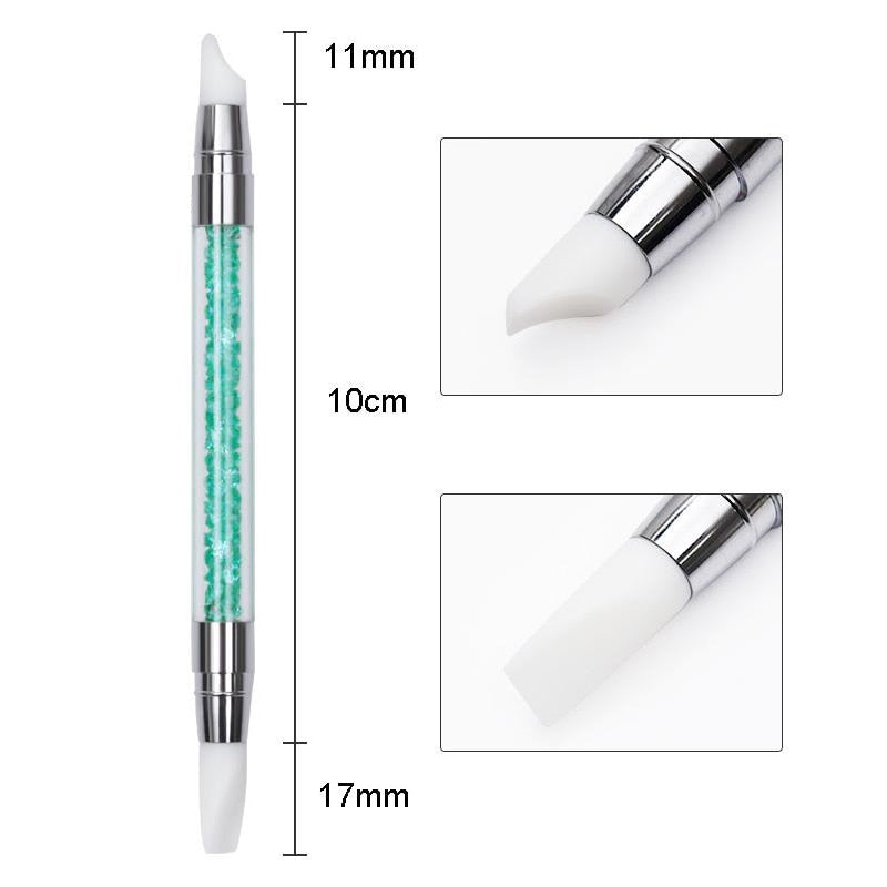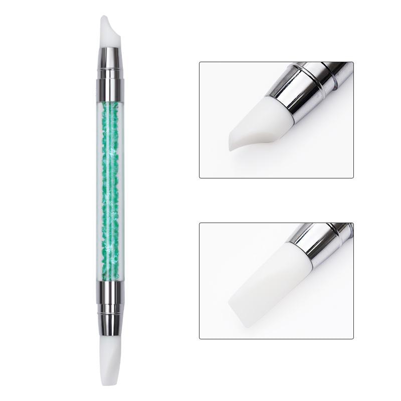 1 Pc Double Way Rhinestone Silicone Nail Brush Carving Emboss Hollow Pottery Pen UV Gel Shaping Silicone Brushes Nail Art Tool-Nail Inspo