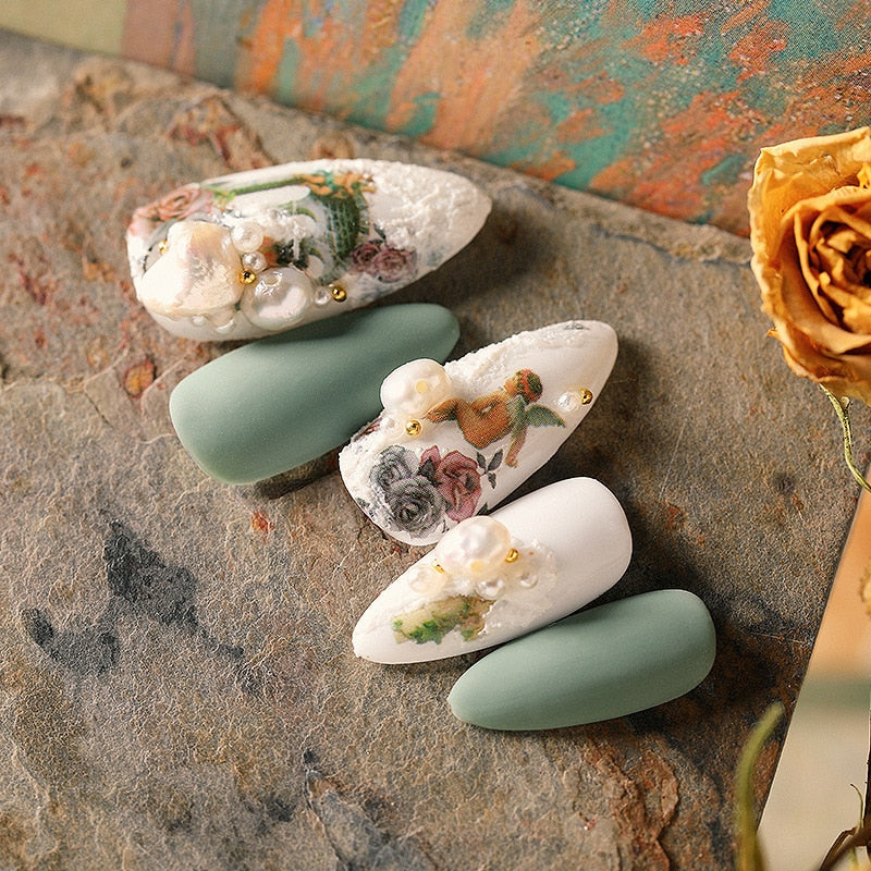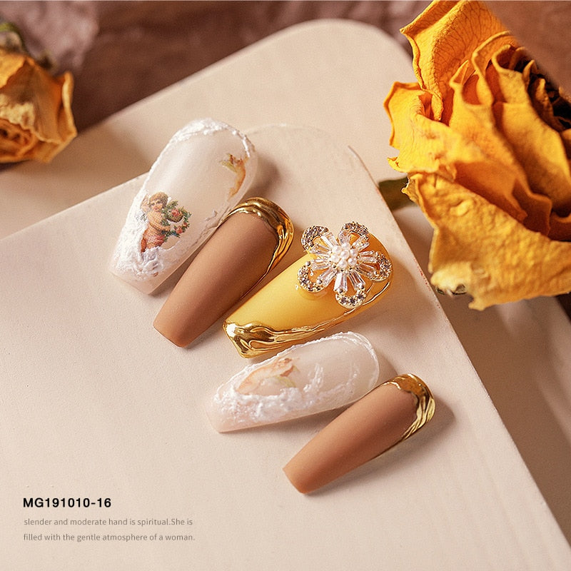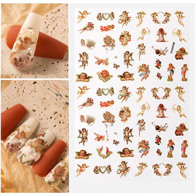1 Sheet 3D Angel Design Nail Stickers Elegant Cupid Flower Nail Art Decoration DIY Back Adhesive Decal Ornament Stickers-Nail Inspo