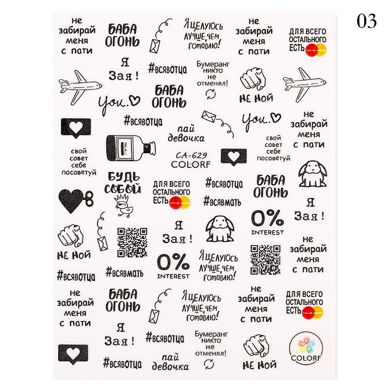 1 Sheet 3D Nail Stickers Black Geometric Flower Letter Patterns Adhesive Transfer Decals Nail Art DIY Design Decoration-Nail Inspo