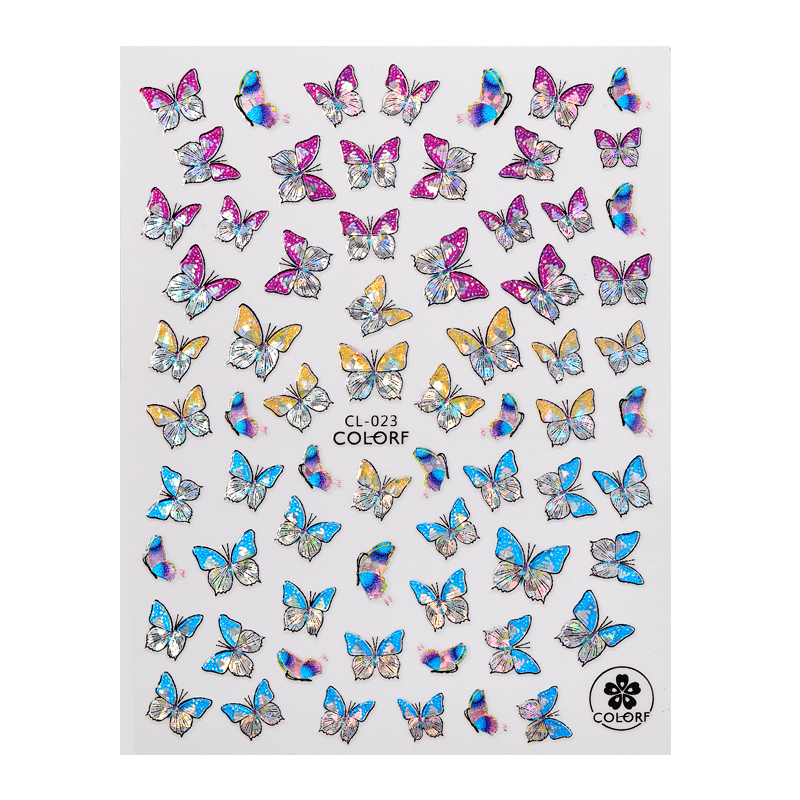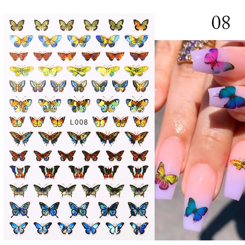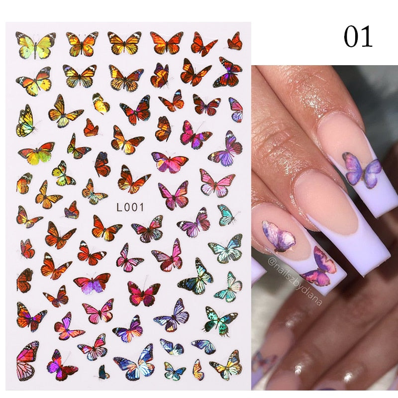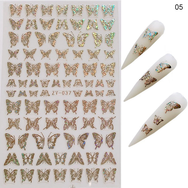 1 Sheet Laser Butterfly Gold Silver Black White 3D Nail Stickers Butterflies Heart Nail Decals Slider DIY Nail Art Decotaion-Nail Inspo
