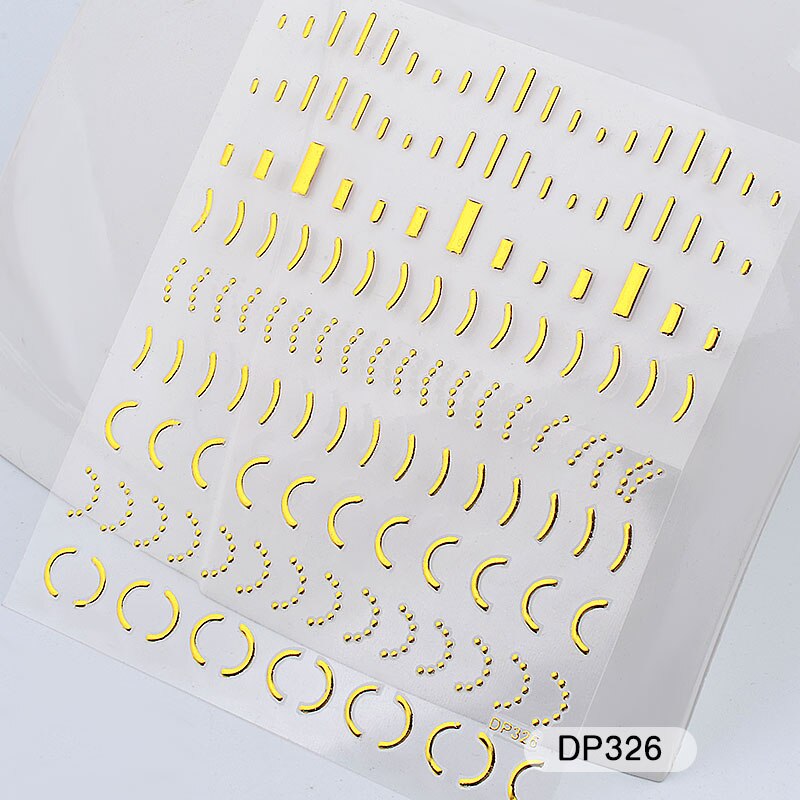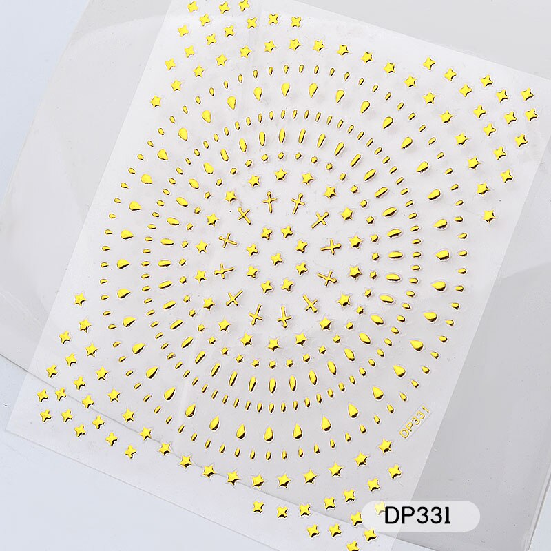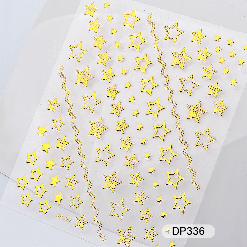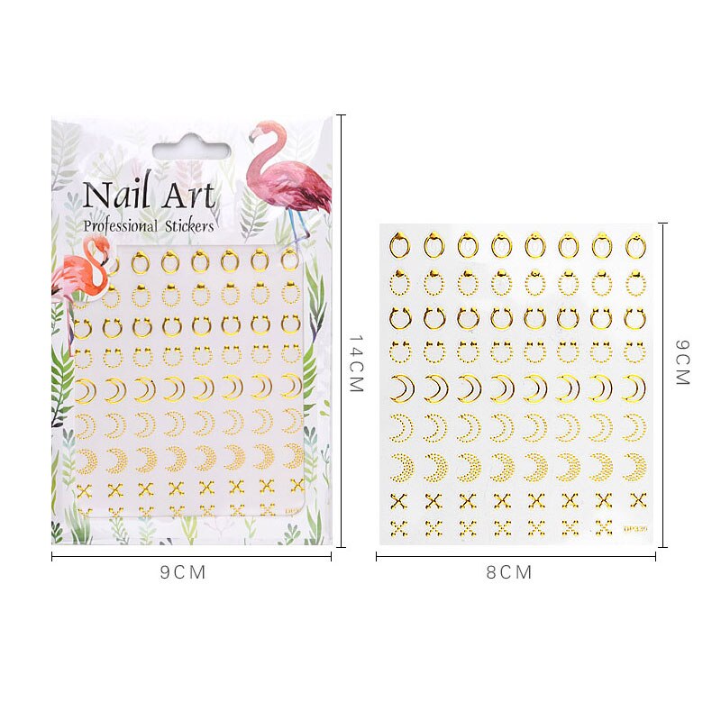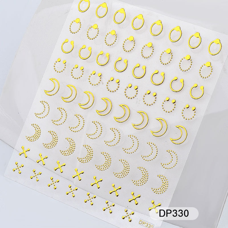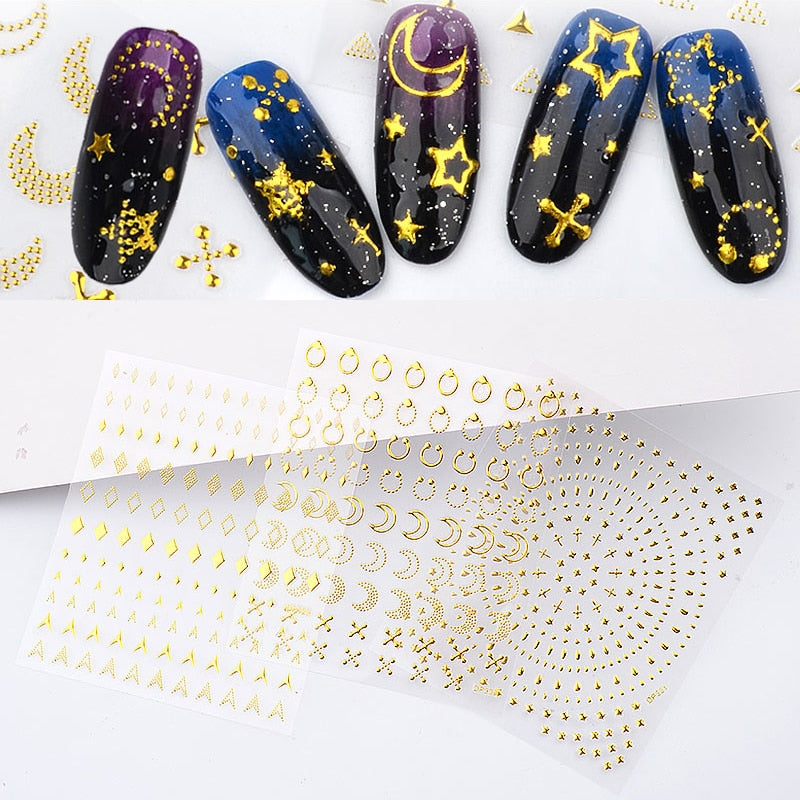 1 Sheet Metallic Nail Art Stickers Mixed Moon/Star/Arrow/Triangle Geometric Patterns 3d Gold Hollow Adhesive Sticker Decorations-Nail Inspo