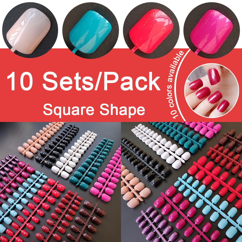 10 Sets Square Shape False Nail Tips In Same Color 24 Pieces/Set 10 Sizes Press on Fake Nails DIY Manicure Finger Nail Tips-Nail Inspo