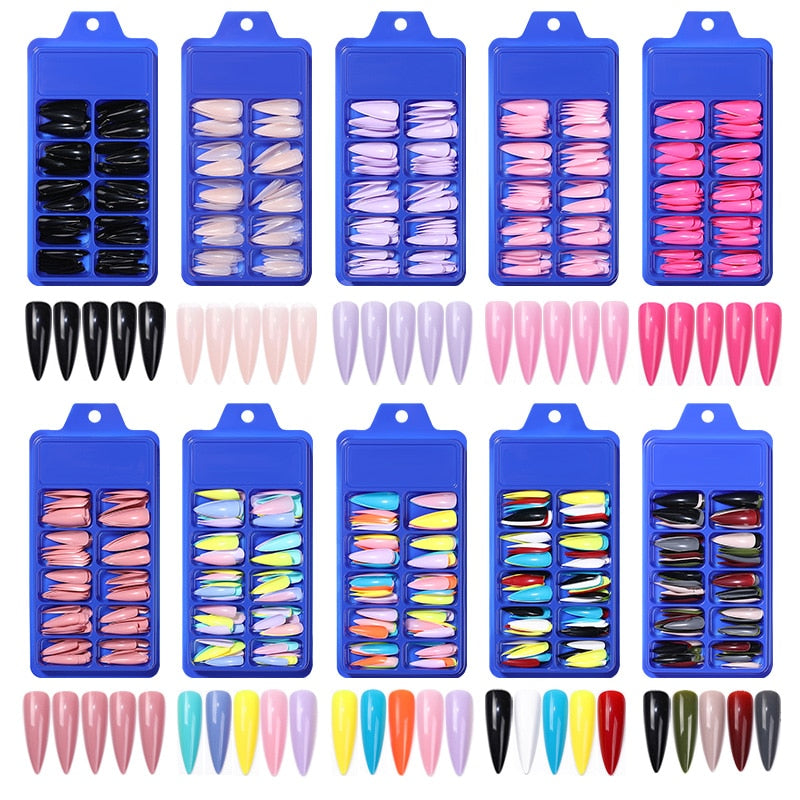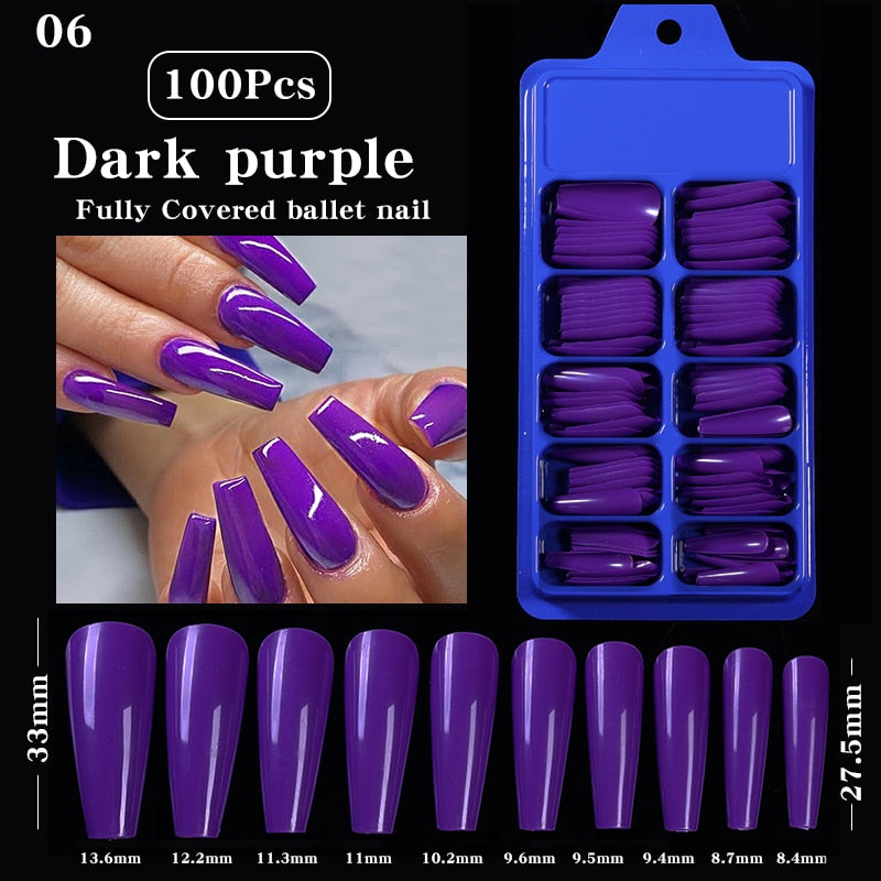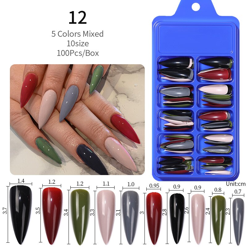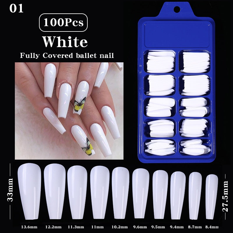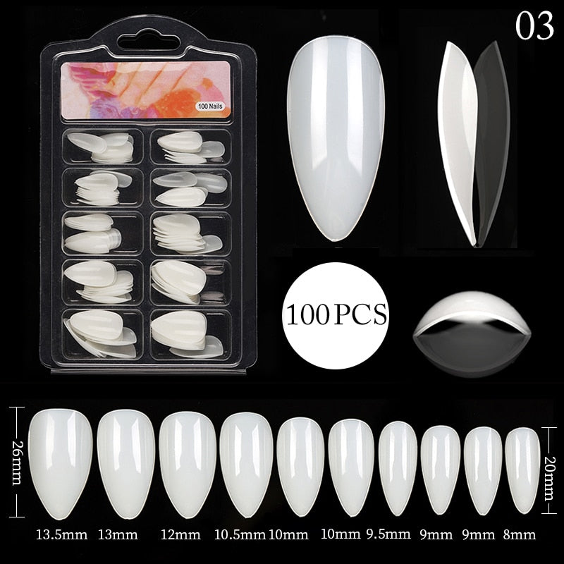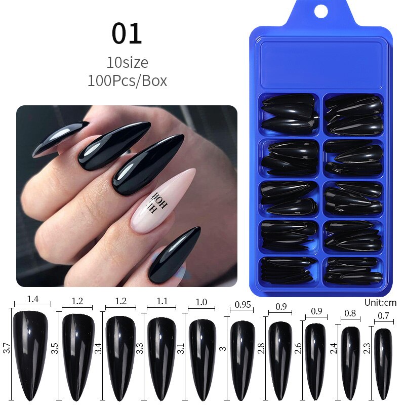 100Pcs Black White False Nail Tips Full Cover Acrylic Almond Coffin Candy Colorful Fake Nails Tip Manicure Extension Nail Tool-Nail Inspo