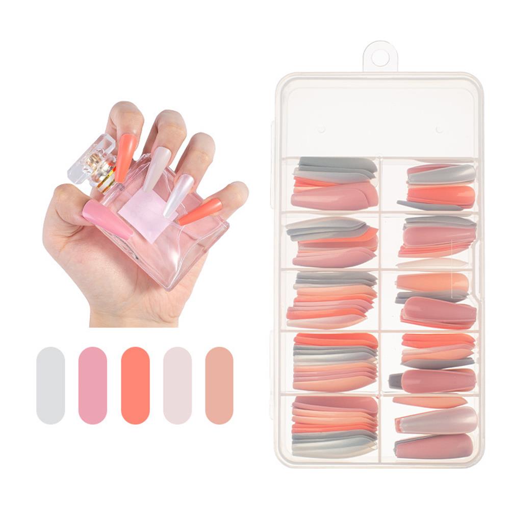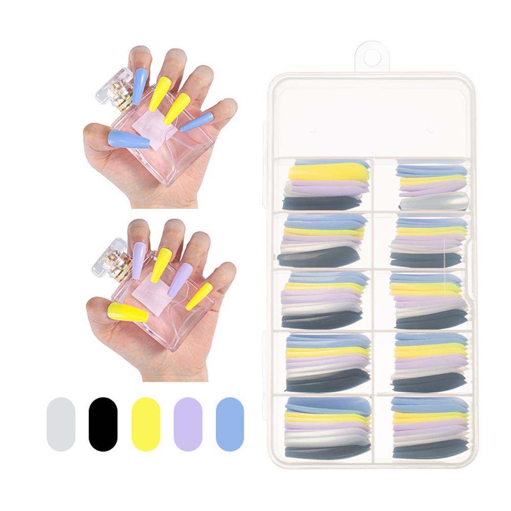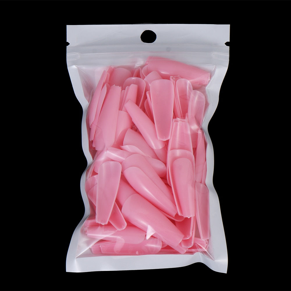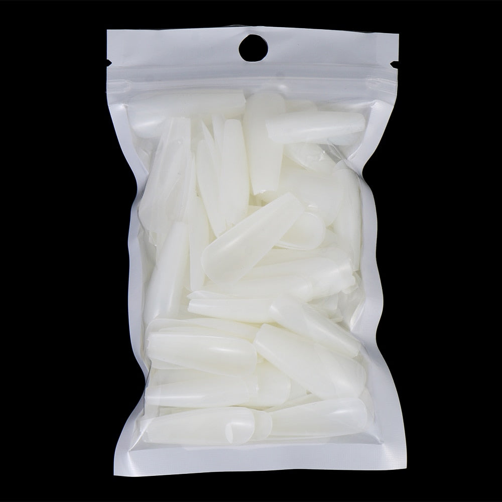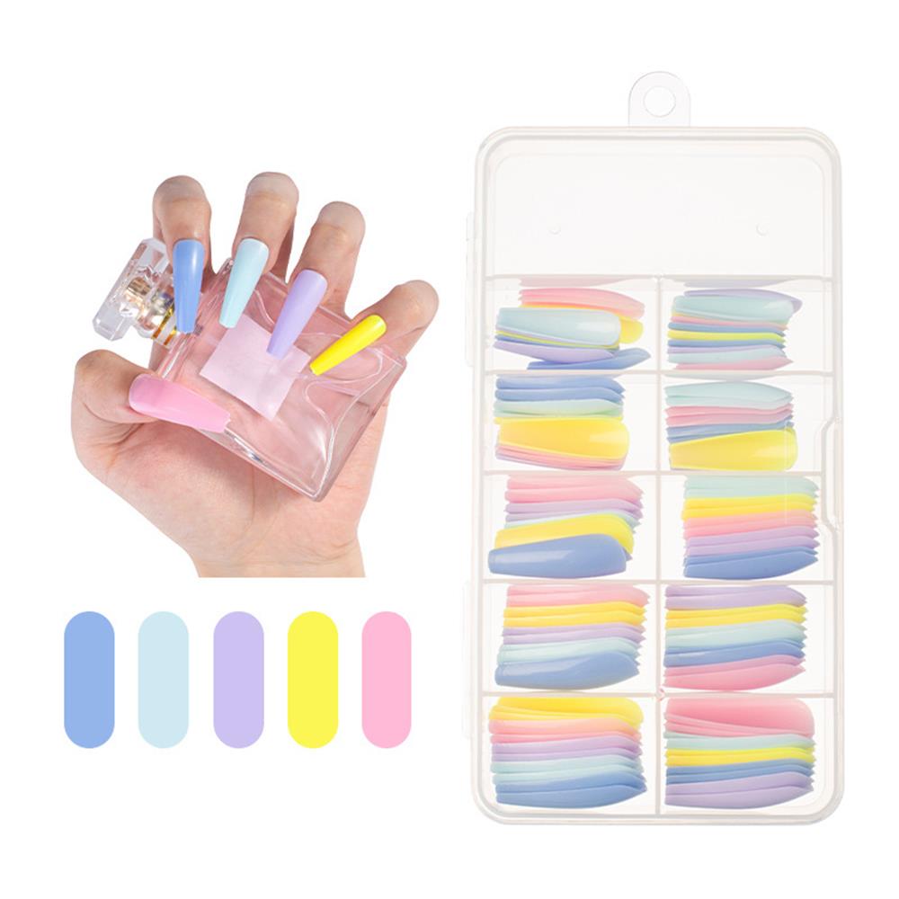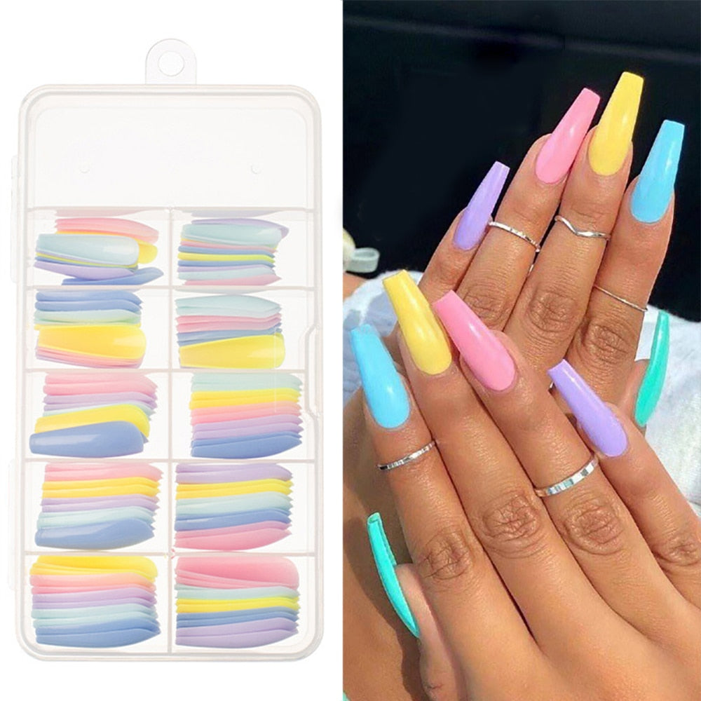 100Pcs Colorful Acrylic False Long Coffin Nails Fake Nails Flat Shape Art Tips Natural Full Cover Fake Nail Tips Manicure Tools-Nail Inspo