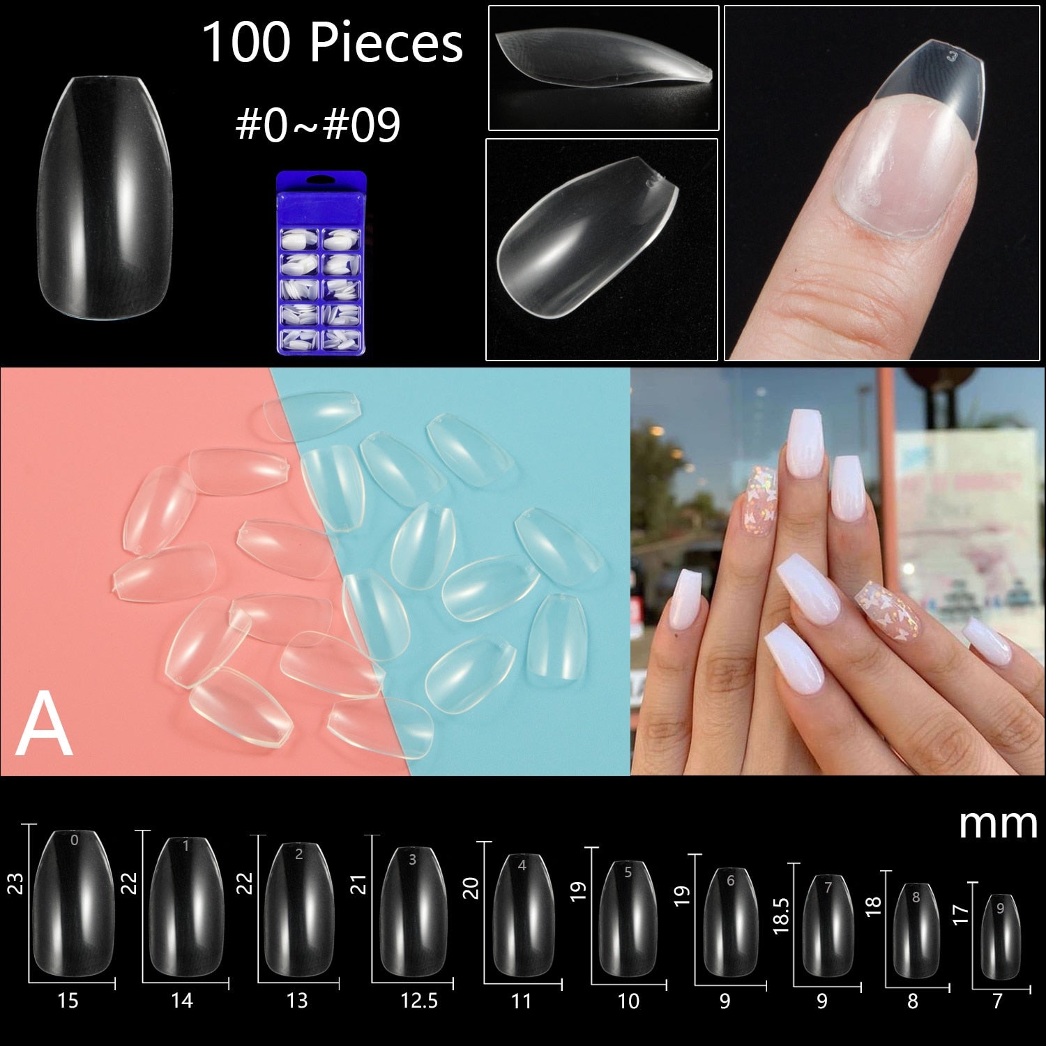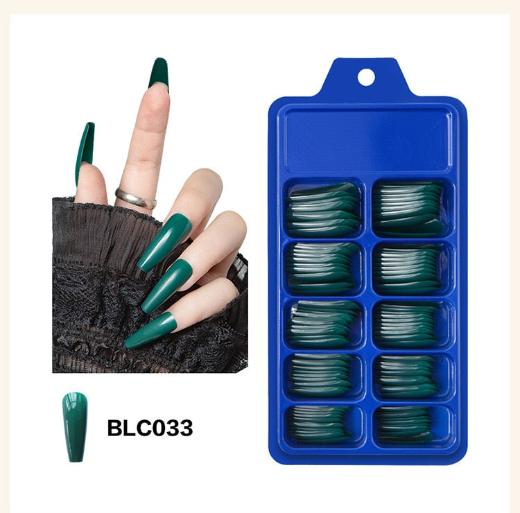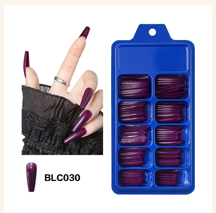 100pcs/set 10 Sizes Full Cover False Nail Tips Ballerina Coffin Fake Nails Square Stiletto French Acrylic Press On Nails-Nail Inspo