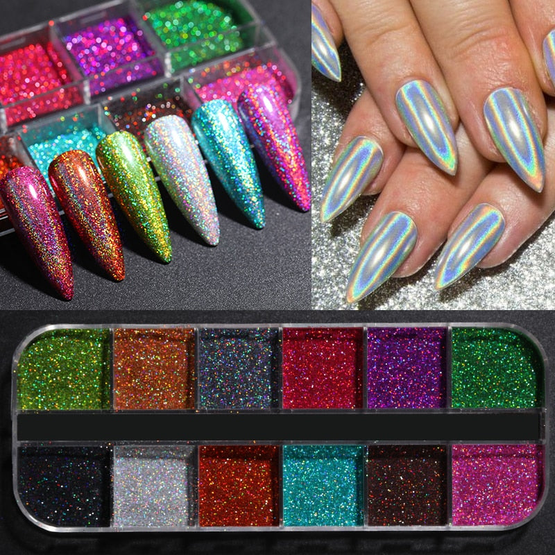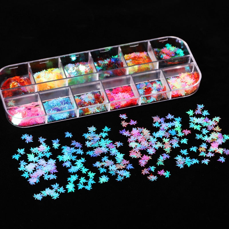 12 Grids Colorful Flourescent Nail Sequins Hollow Circle Sequins Neon Round Nail Art Glitter Flakes Butterfly 3D Slice Tips-Nail Inspo
