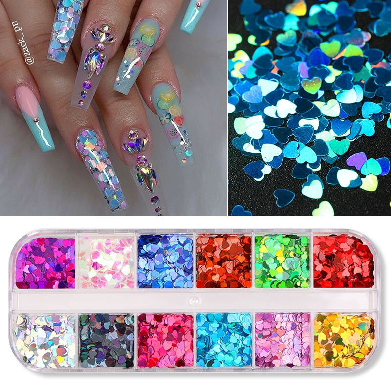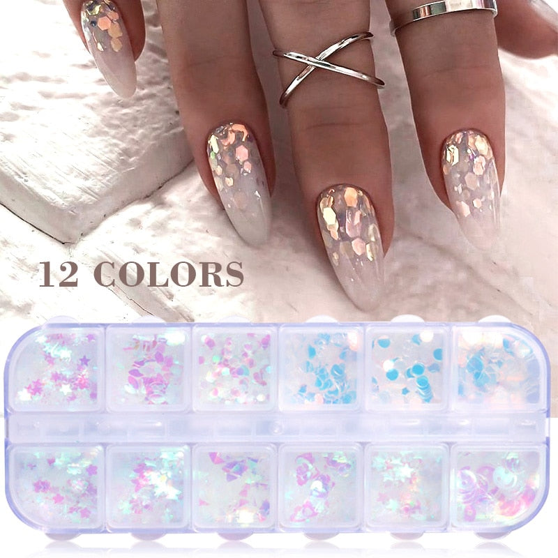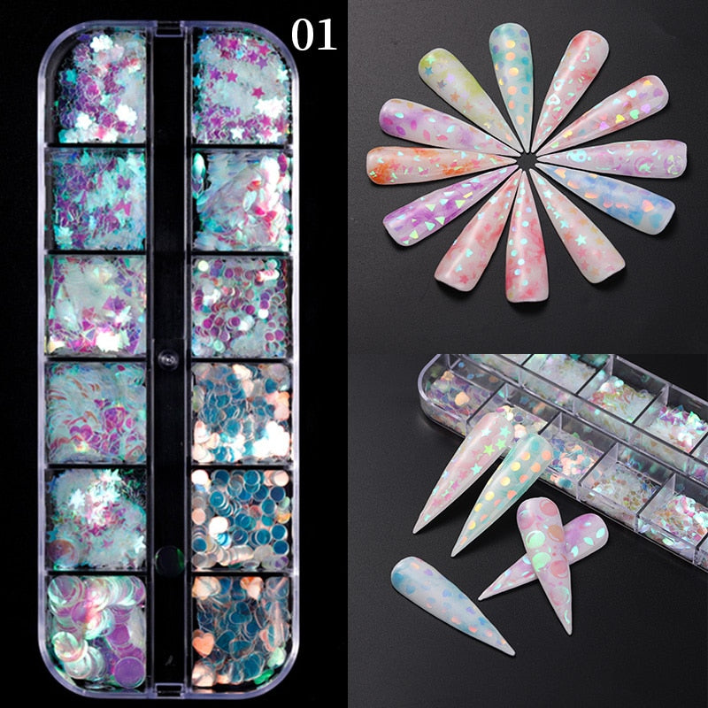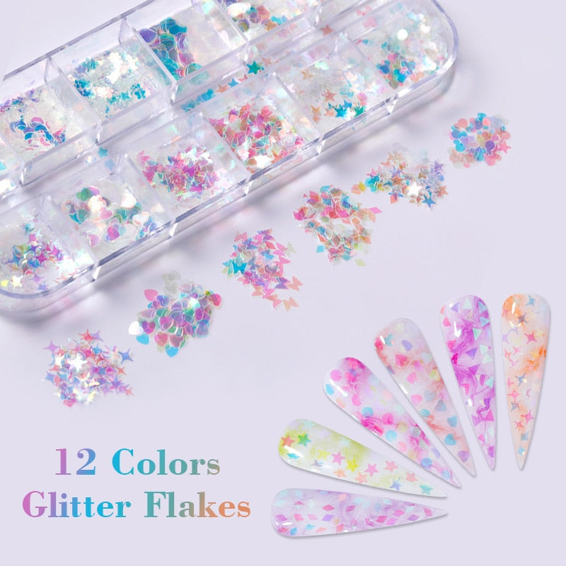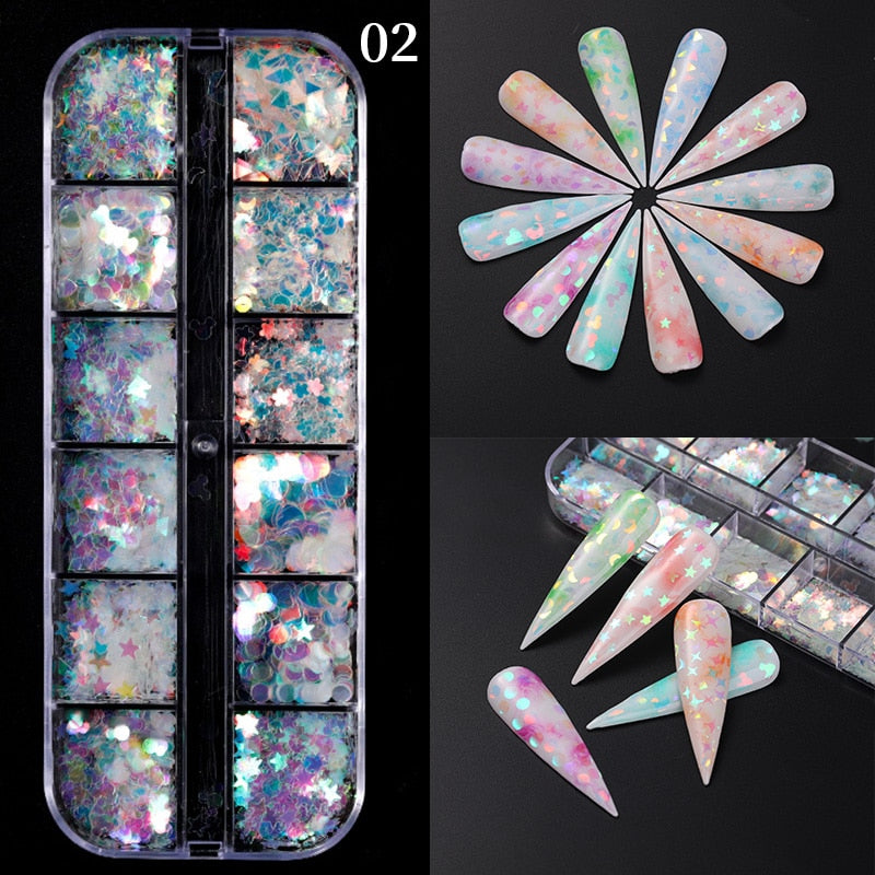 12 Grids Spangles Nail Sequins Aurora AB Nail Flakes Stunning Pailliette Heart Butterfly Spring Sticker Nart Tips Decoration-Nail Inspo