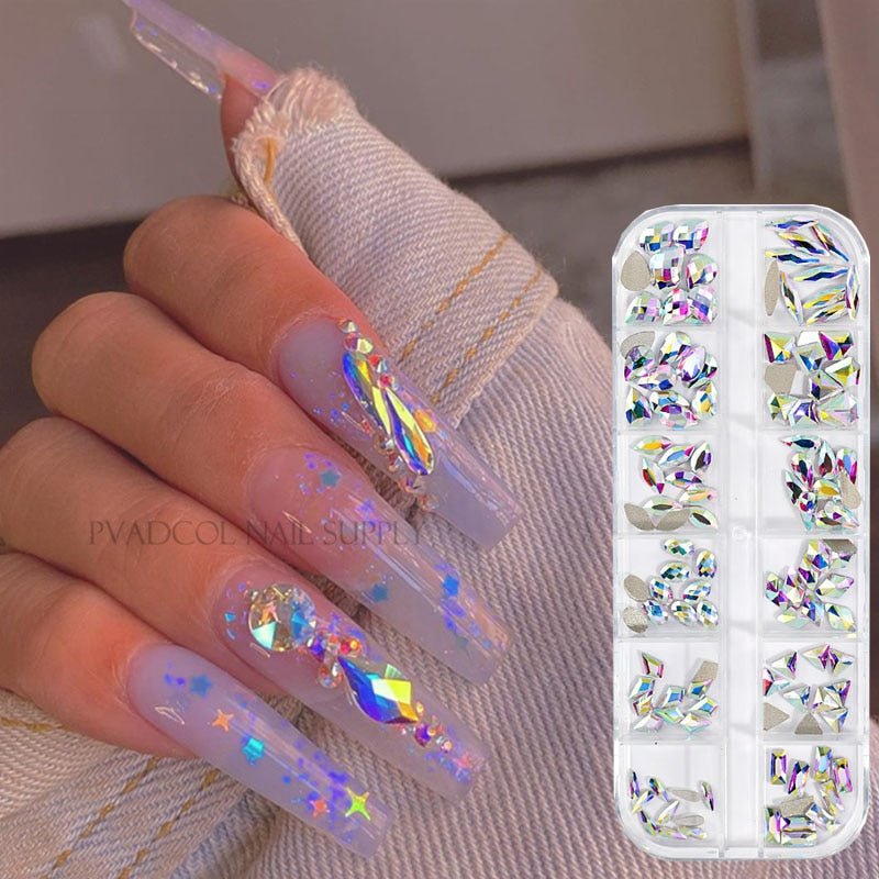 120pcs/lot Glass Crystal Nail Art AB Rhinestones Multi Shape FlatBack Glitter Diamond 3D Tips Decoration-Nail Inspo