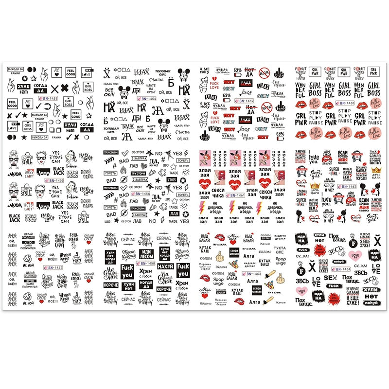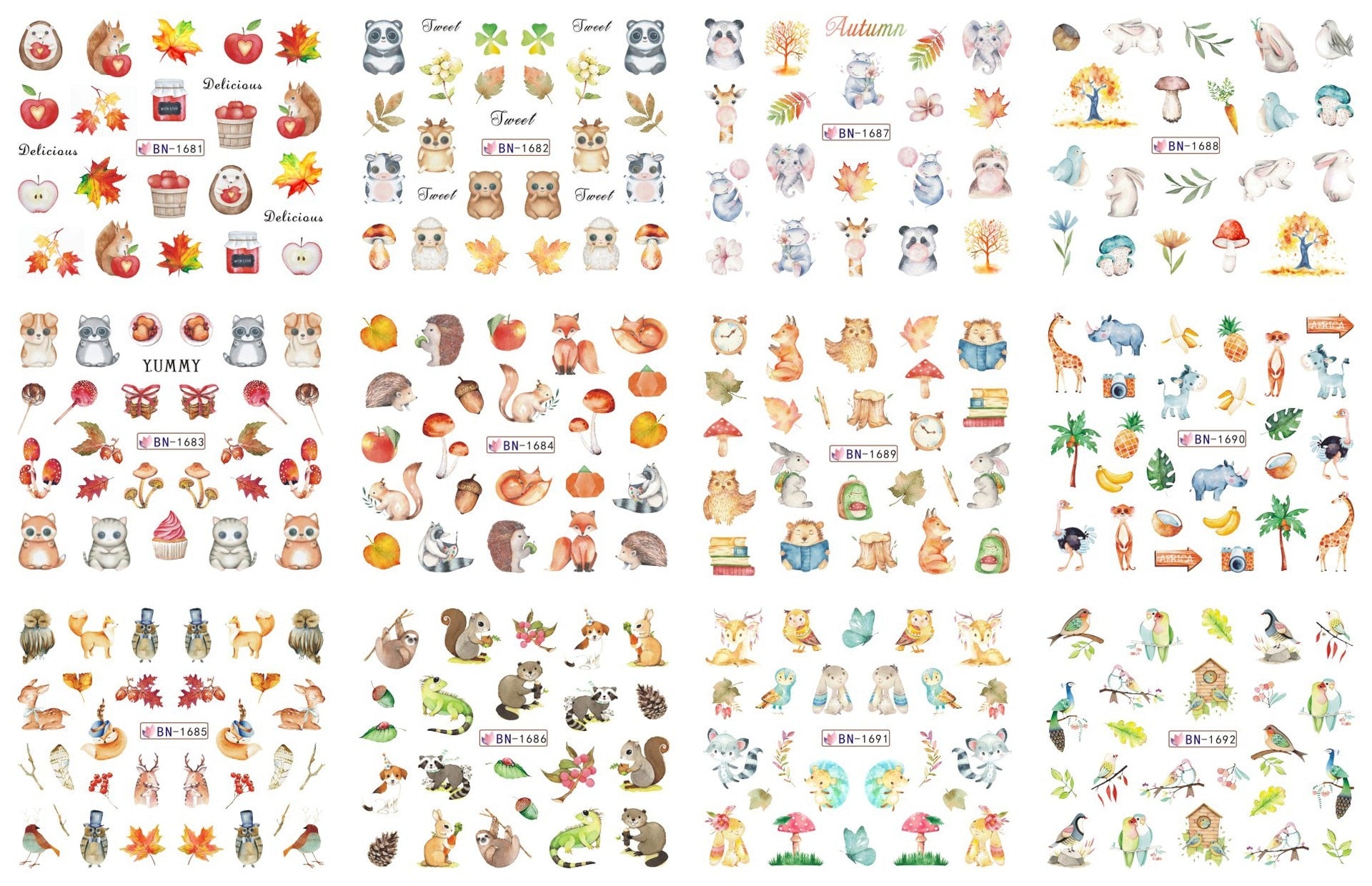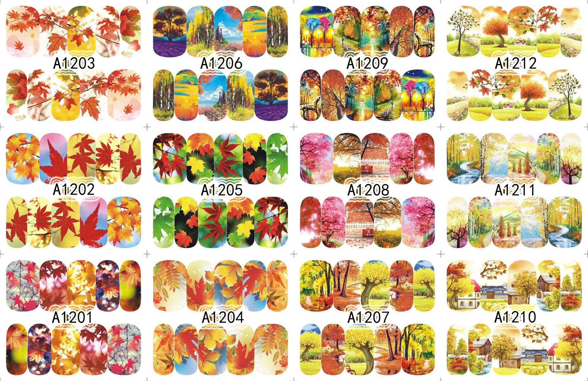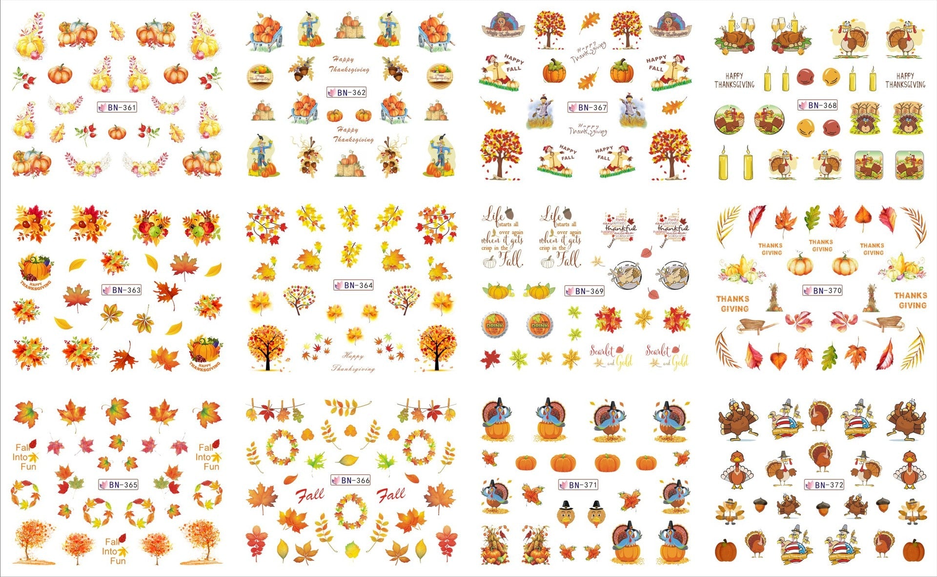 12pcs Fall Nail Stickers Set Maple Leaves Alphabet Flower Nail Water Stickers Transfer Decals Sliders DIY Manicures Decoration-Nail Inspo