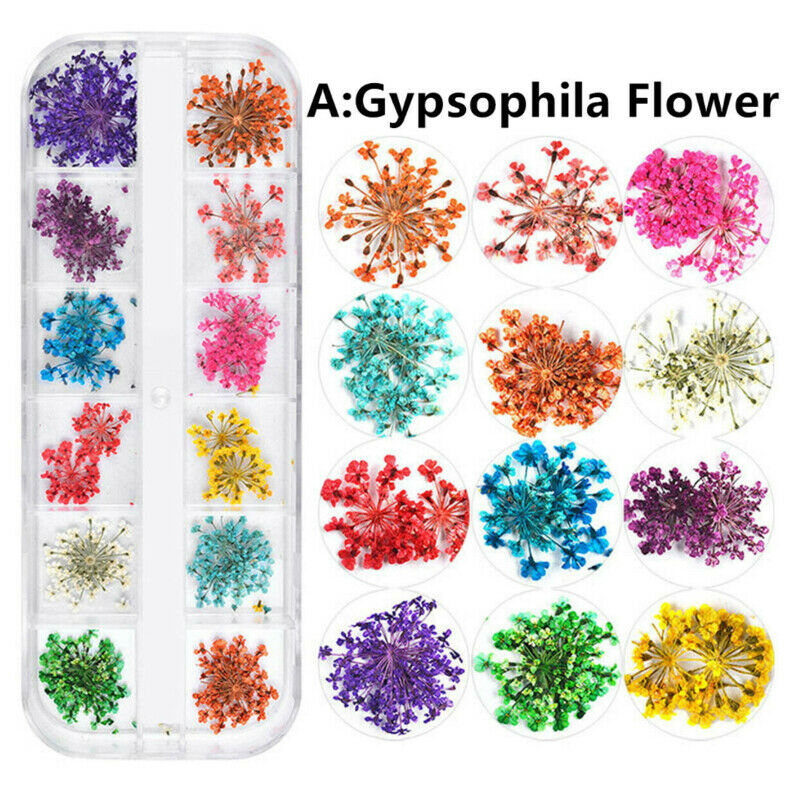 12pcs/lot 3D Nail Art Dried Flowers Acrylic UV Gel Nails Tips Salon Manicure Decoration-Nail Inspo