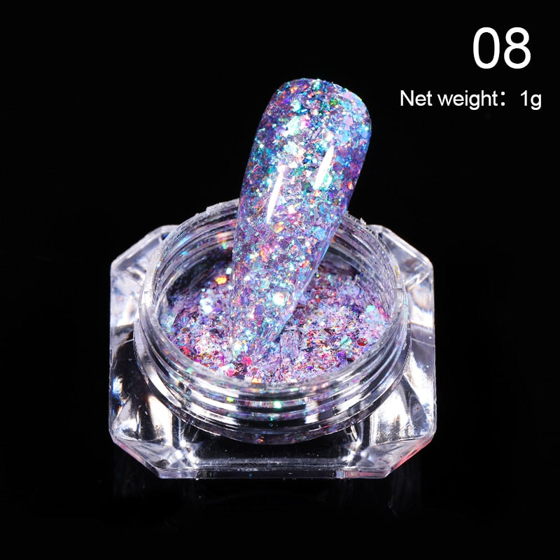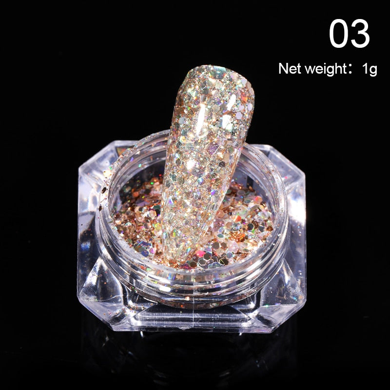 1g Glitter Nail Sequins iridescent Powder Shining Irregular 3D Hexagon Colorful Sequins Summer Popular DIY Nail Art Decoration-Nail Inspo