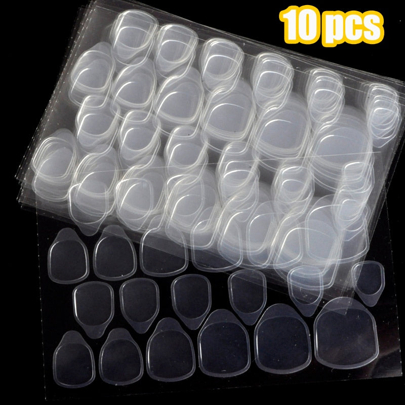 1lot= 10 Sheets Jelly Double-side Glue Sticker For Fake Nails Tips Transparent Flexible Adhesive Tabs-Nail Inspo