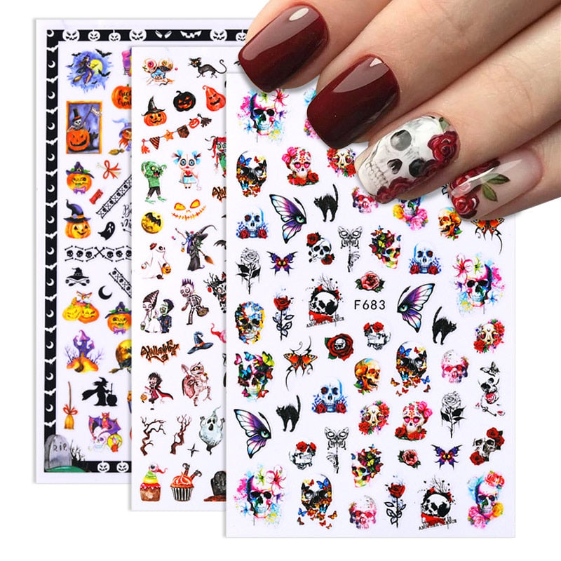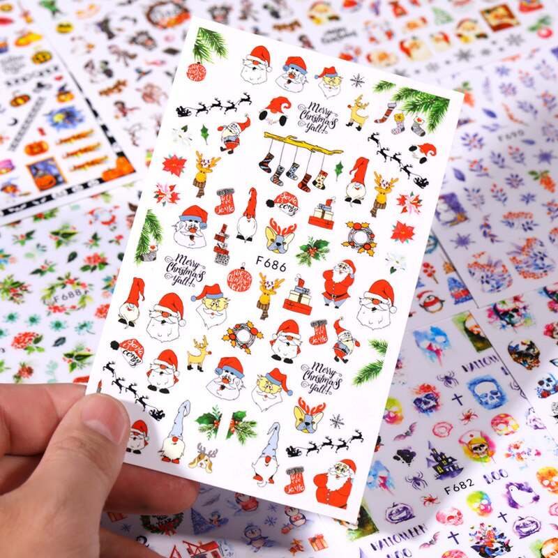 1Pc 3D Halloween Nail Stickers Anime Joker Spider Snake Sliders Nail Art Decals Adhesive Christmas Snowflake Decoration Tips-Nail Inspo