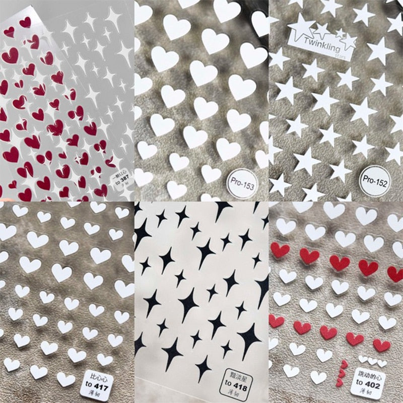 1PC 3D Nail Sticker Back Adhesive Engraved Acrylic Nail Decals Sparkly Star Love Heart Design for Manicure DIY Decorations-Nail Inspo