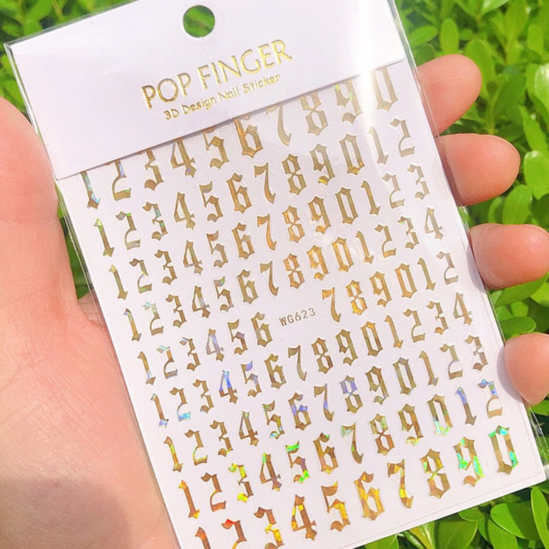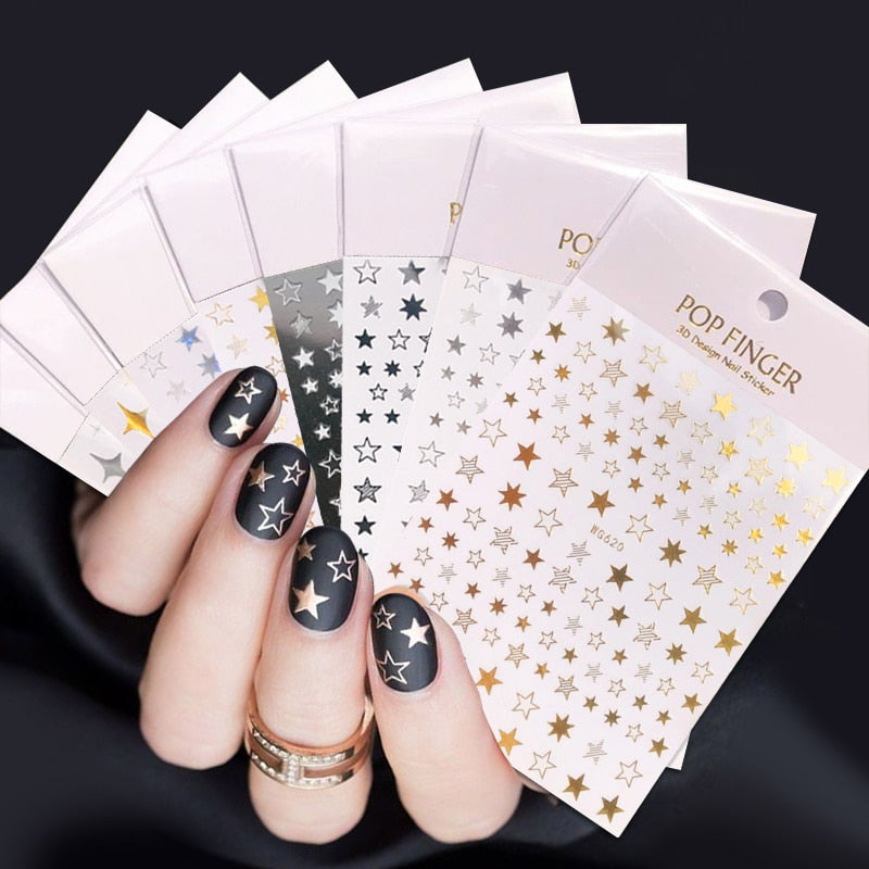1PC 3D Nail Stickers Black Glitter Silver Star Self-Adhesive Slider Letters Nail Art Decorations Decals Manicure Accessories-Nail Inspo