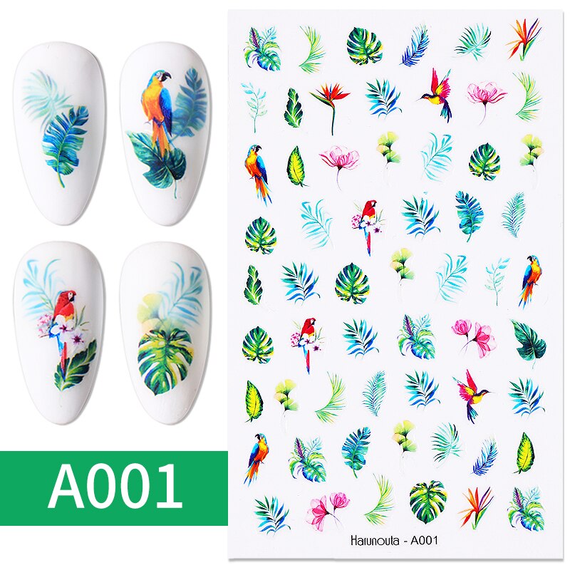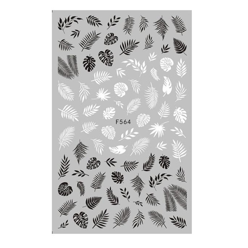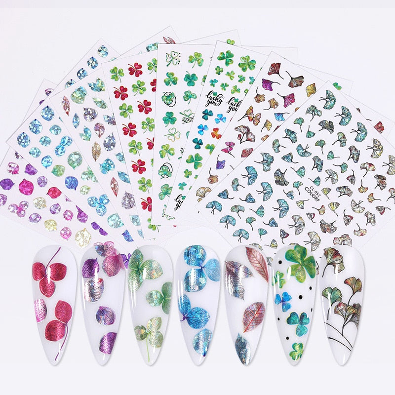 1PC 3D Nail Stickers Fan Leaf Dried Flower Shiny Sliders Nail Art Decorations Lucky Clover Pattern Foil Nail Art Manicure-Nail Inspo
