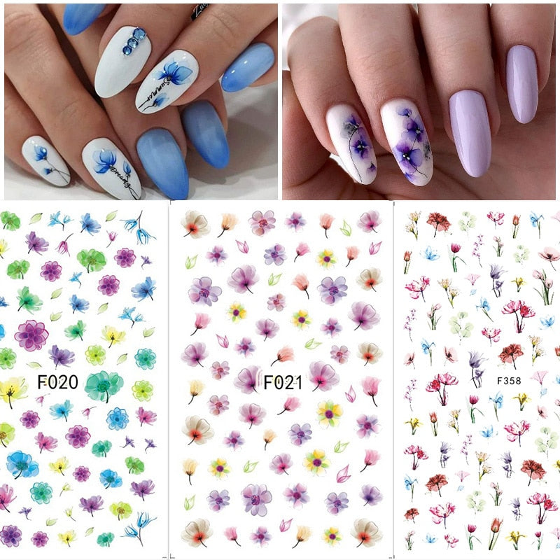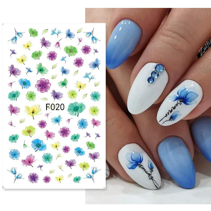 1PC 3D Nail Stickers Flowers Leaves Self-Adhesive Slider Letters Nail Art Decorations Decals Nail Art Tool Manicure Accessories-Nail Inspo