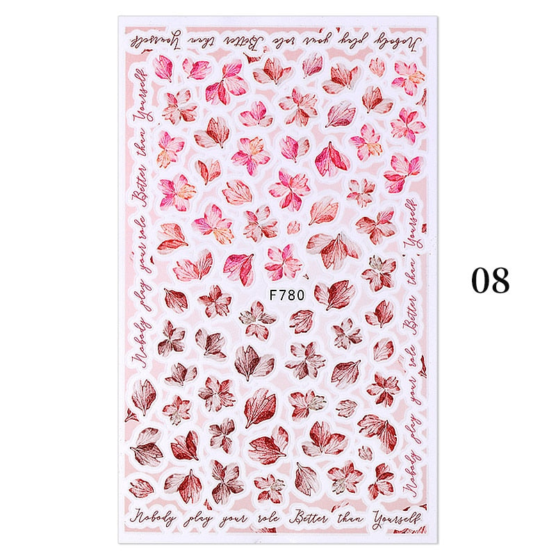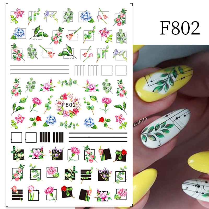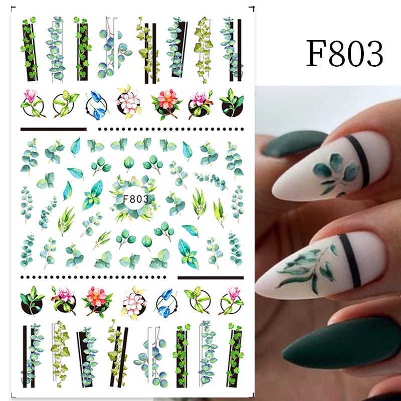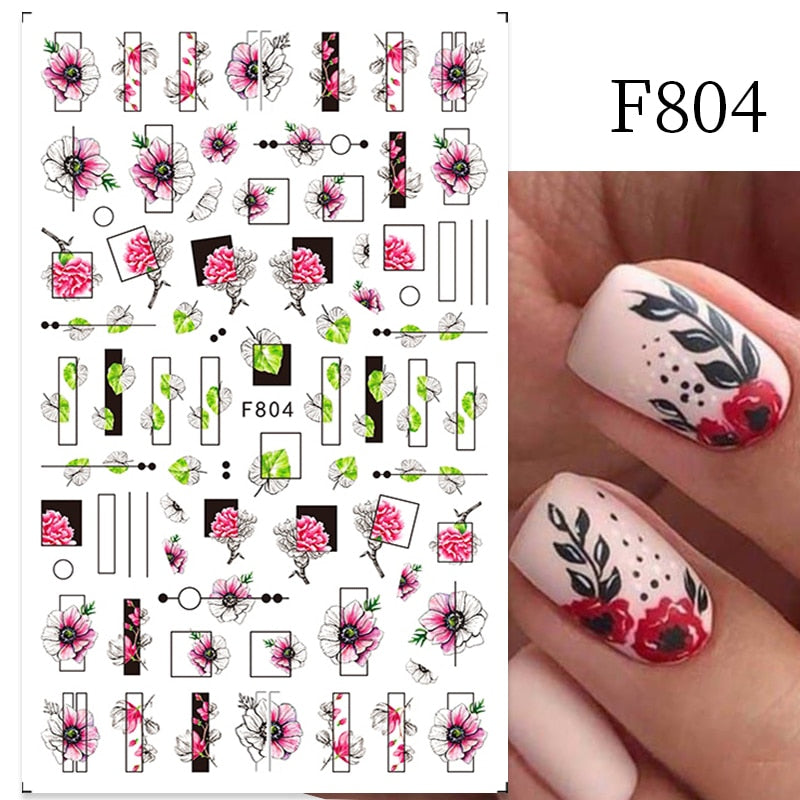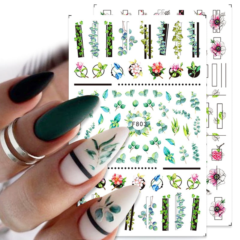 1PC 3D Nail Stickers Flowers Leaves Self-Adhesive Slider Letters Nail Art Decorations Love Heart Decals Manicure Accessories-Nail Inspo