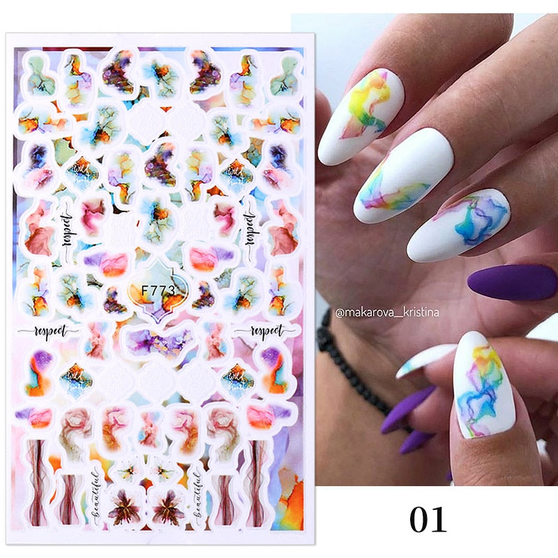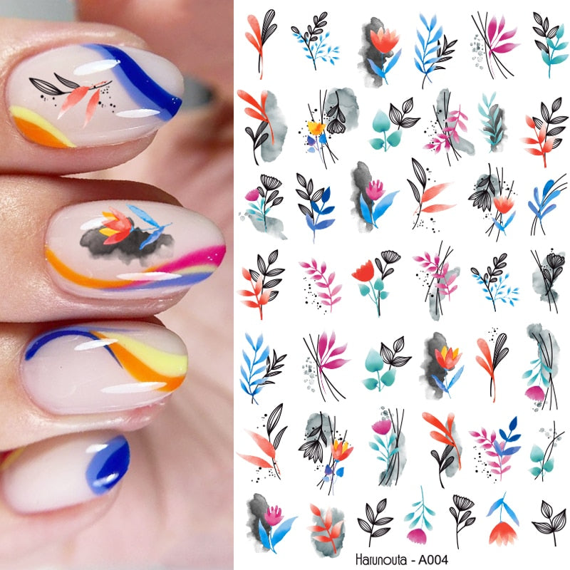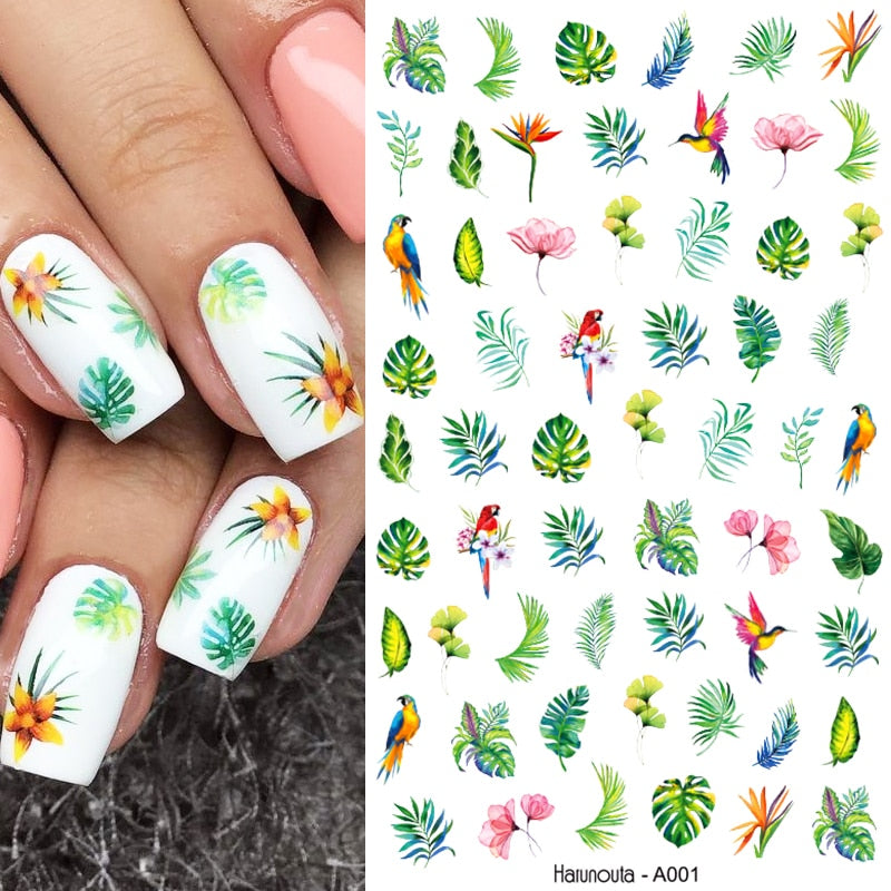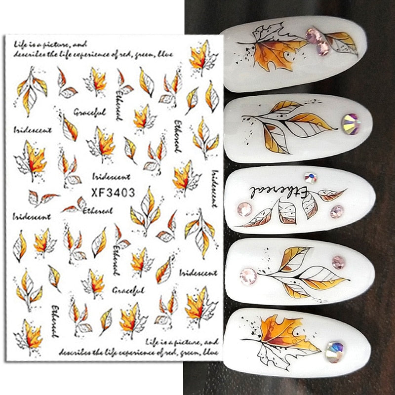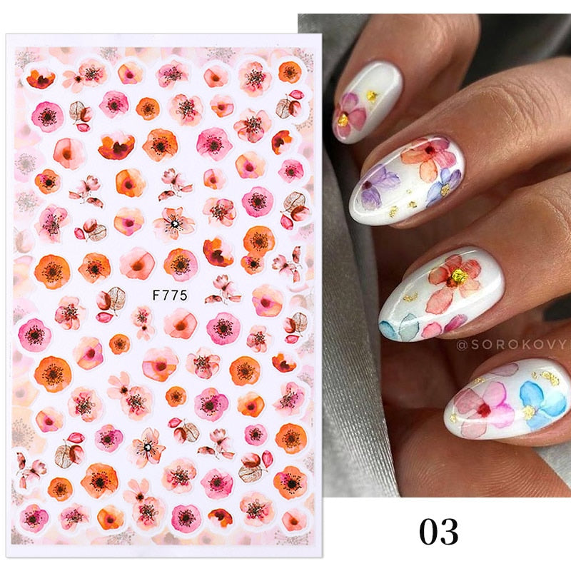 1PC 3D Nail Stickers Flowers Leaves Self-Adhesive Slider Letters Nail Art Decorations Love Heart Decals Manicure Accessories-Nail Inspo