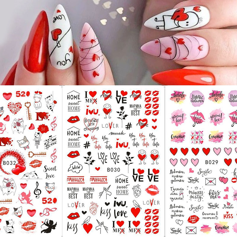 1PC 3D Nail Stickers Heart Love Self-Adhesive Slider Letters Nail Art Decorations Valentine's Day Decals Manicure Accessories-Nail Inspo