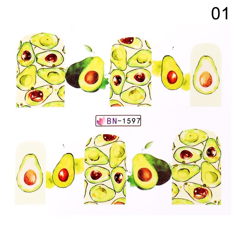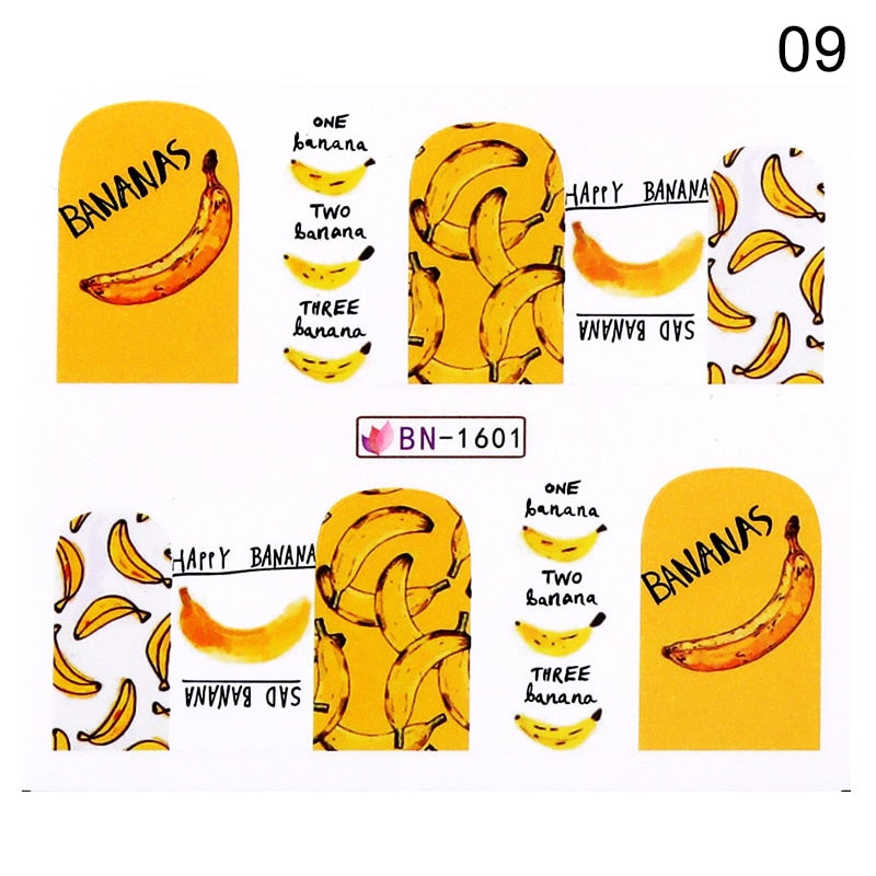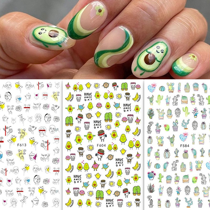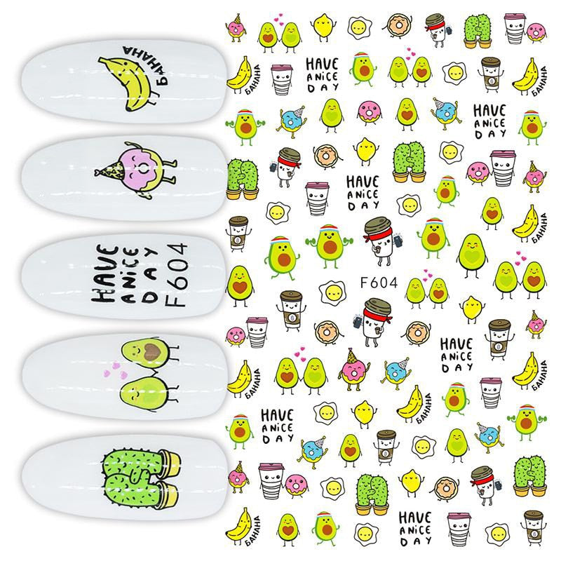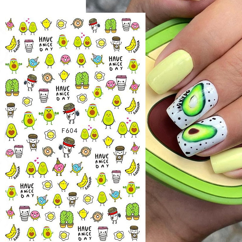 1PC 3D Nail Stickers Kiwi Avocado Lemon Banana Fruits Self-Adhesive Slider Nail Art Decorations Decals Manicure Accessories-Nail Inspo