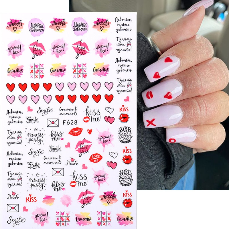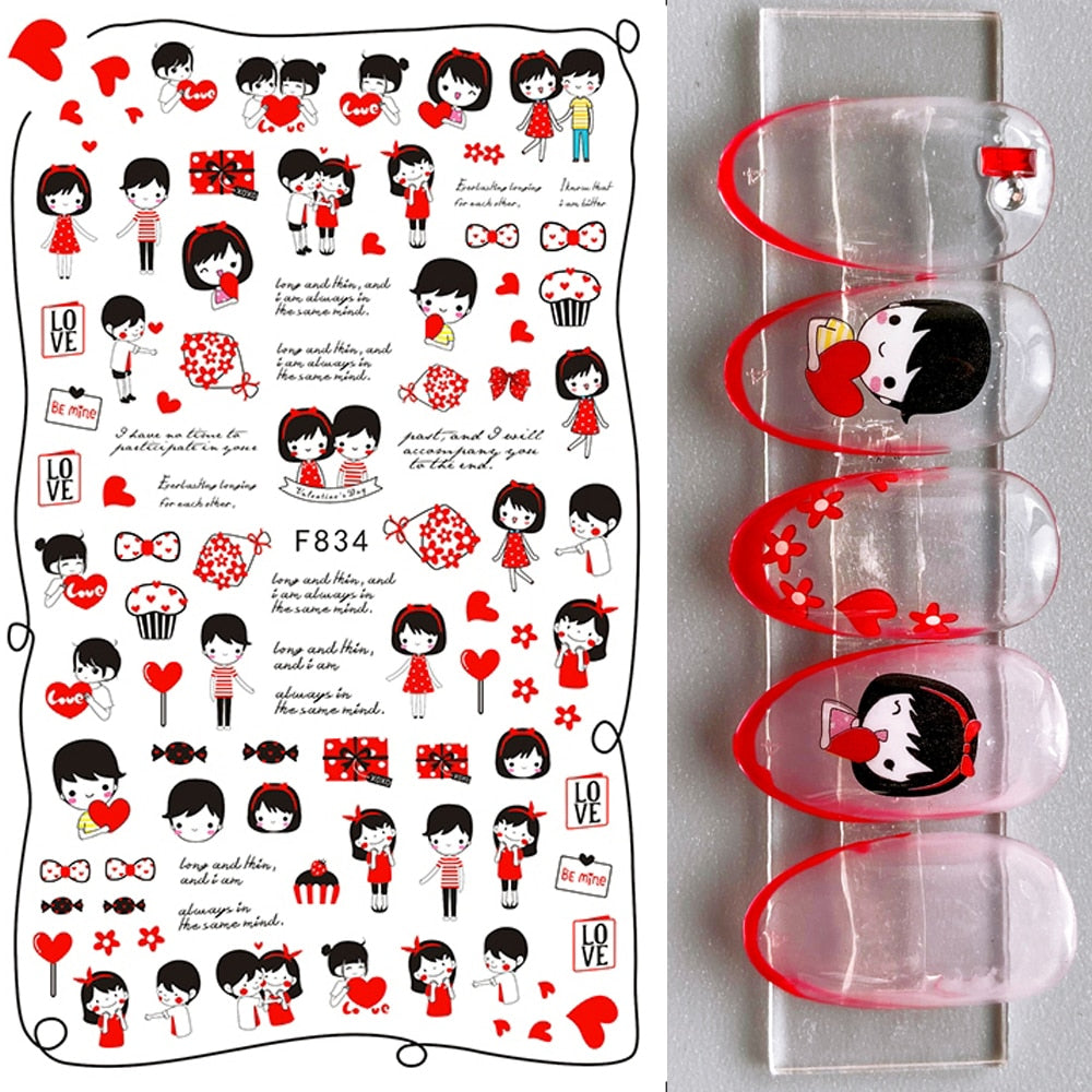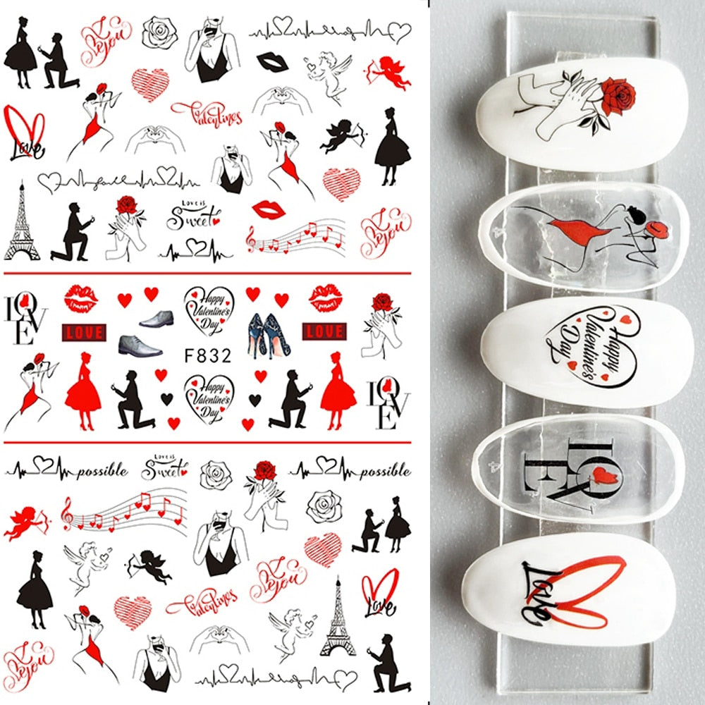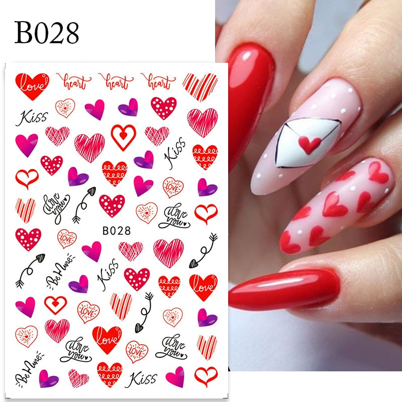 1PC 3D Nail Stickers Red Heart Love Self-Adhesive Slider Nail Art Decorations Valentine's Day Decals Manicure Accessories Tool-Nail Inspo
