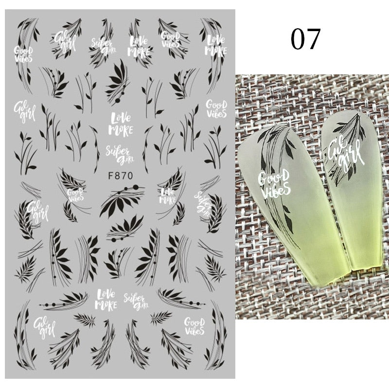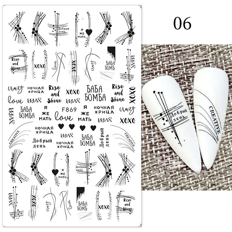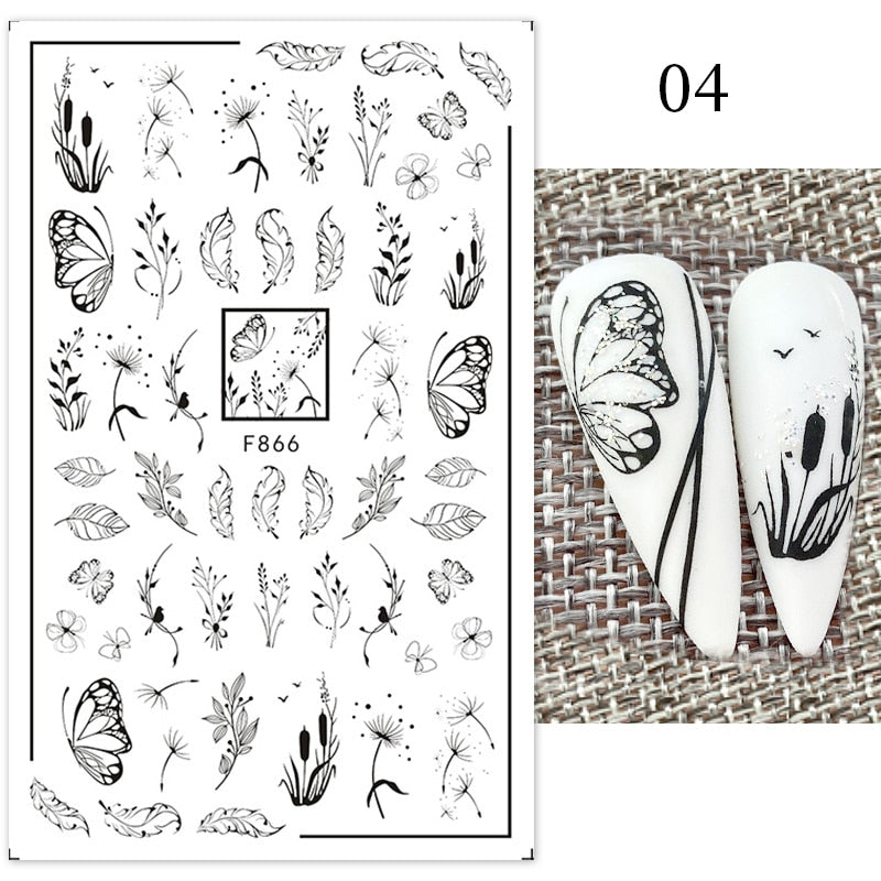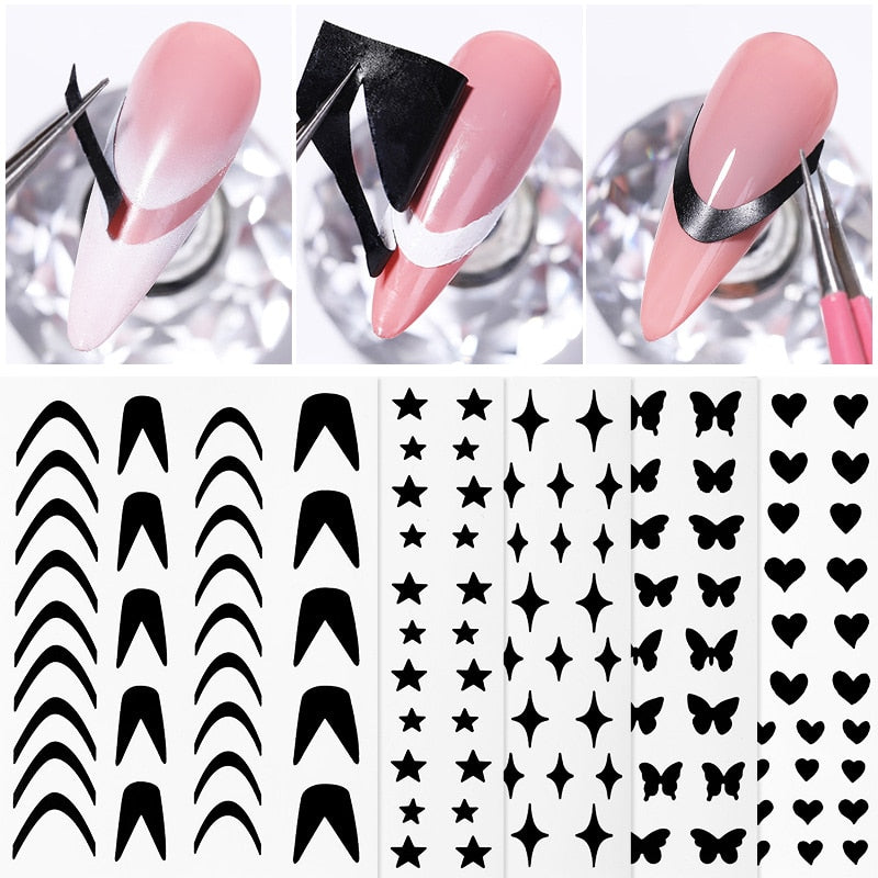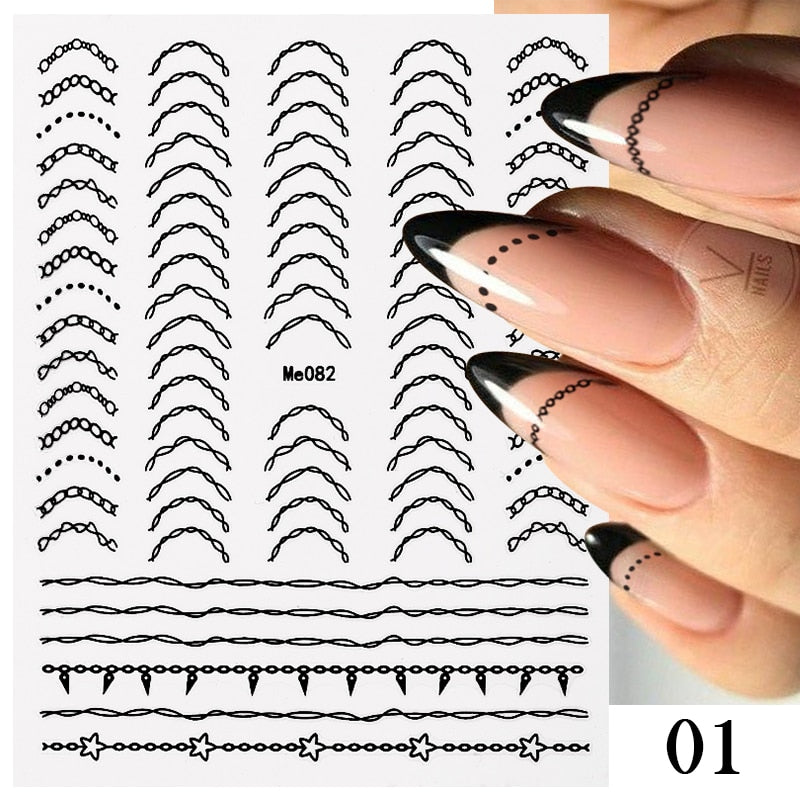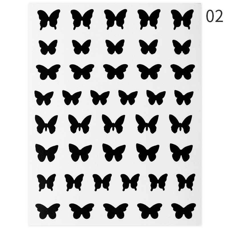 1Pc Black White French 3D Nail Sticker Hollow Painting Nail Trasnfer Sliders Manicure Butterfly Star Heart Pattern Nail Decor-Nail Inspo