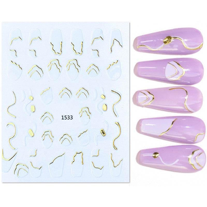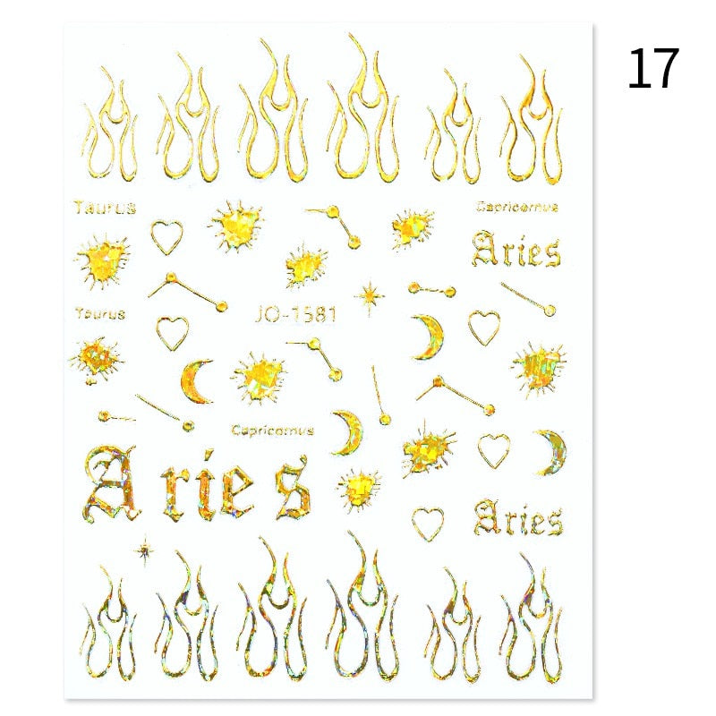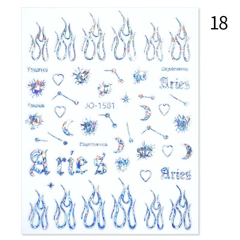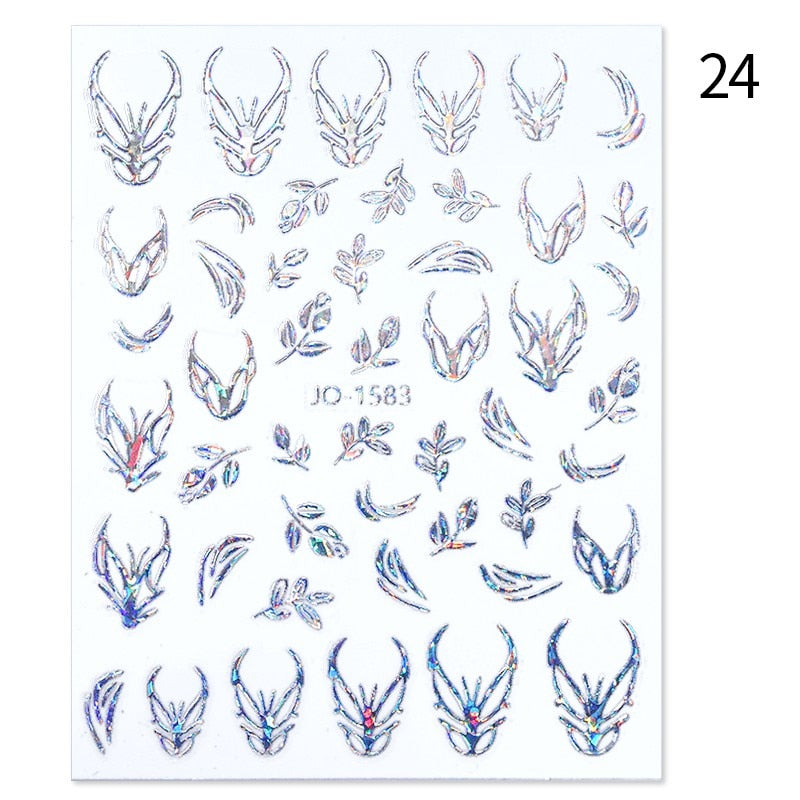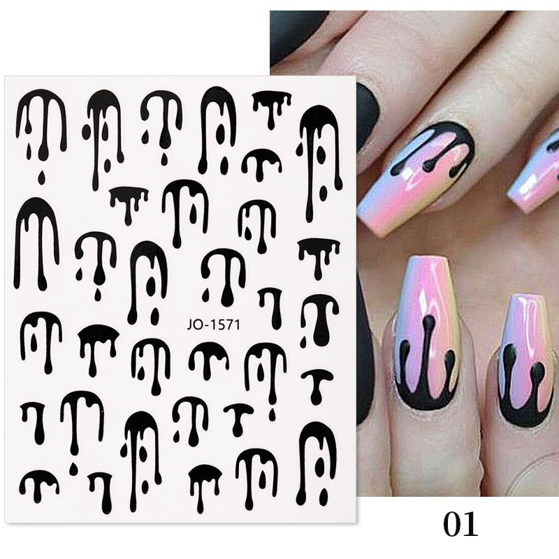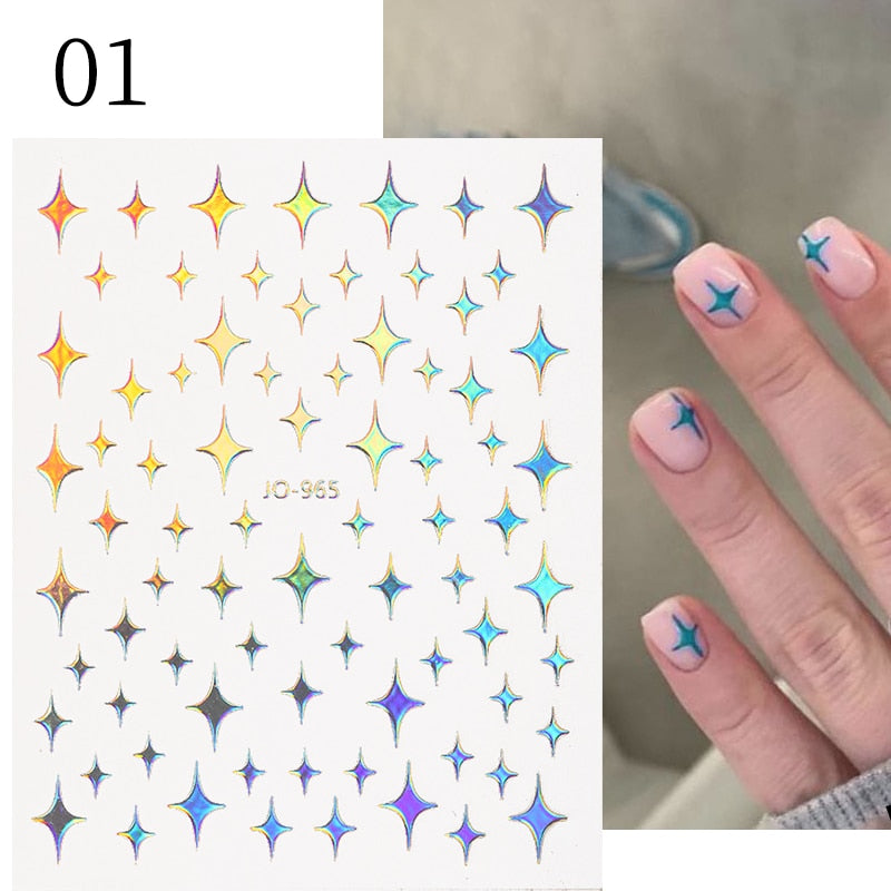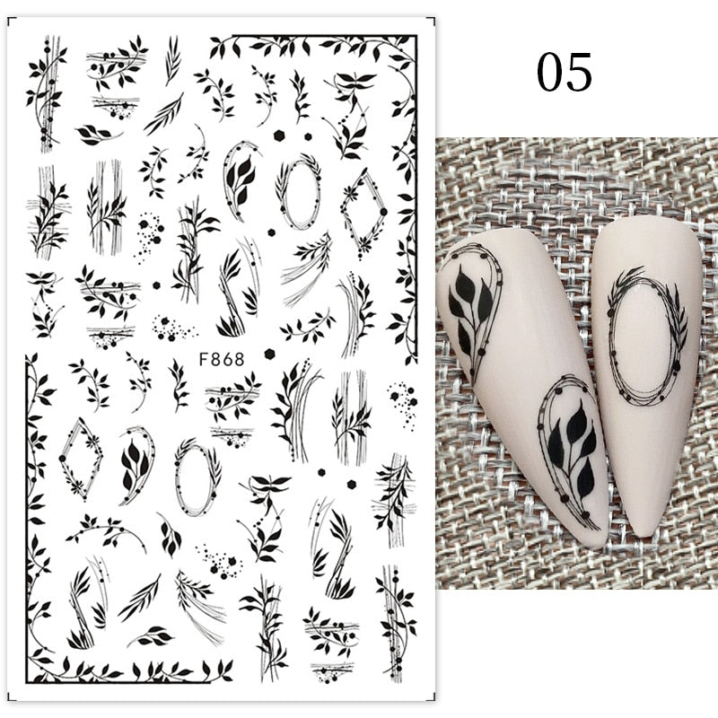 1Pc Black White French 3D Nail Sticker Hollow Painting Nail Trasnfer Sliders Manicure Butterfly Star Heart Pattern Nail Decor-Nail Inspo
