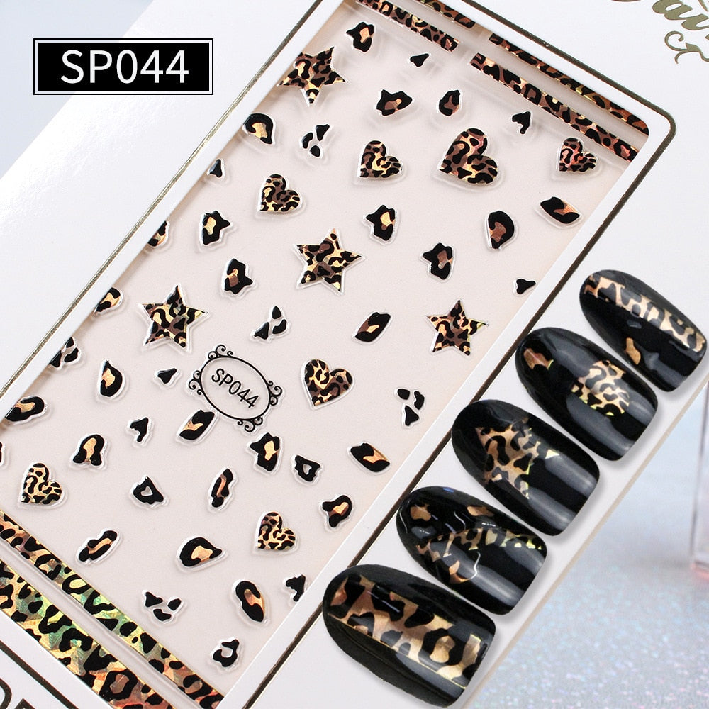 1pc Black/Yellow Leopard Star Love Sexy Nail Art Water Transfer Stickers Decals 3D sticker DIY Design Bronzing Decoration-Nail Inspo