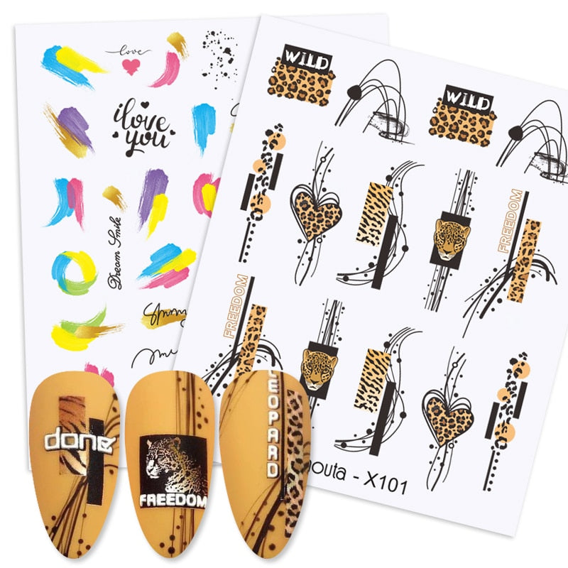 1PC Colorful Letter Nail Water Decals Colorful Flower Leaf Water Transfer Sliders Nail Stickers For Nails Manicures Nail Wraps-Nail Inspo