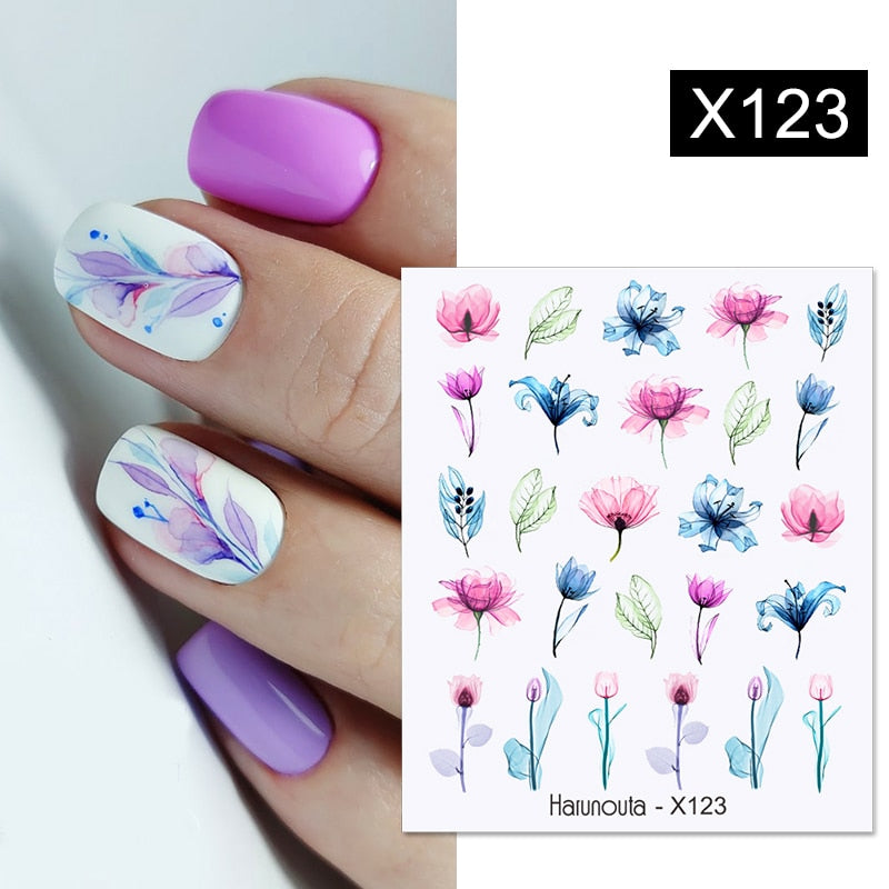 1PC Cool Girls Nail Water Decals Colorful Flower Leaf Water Transfer Sliders Nail Stickers For Nails DIY Manicures Nail Wraps-Nail Inspo