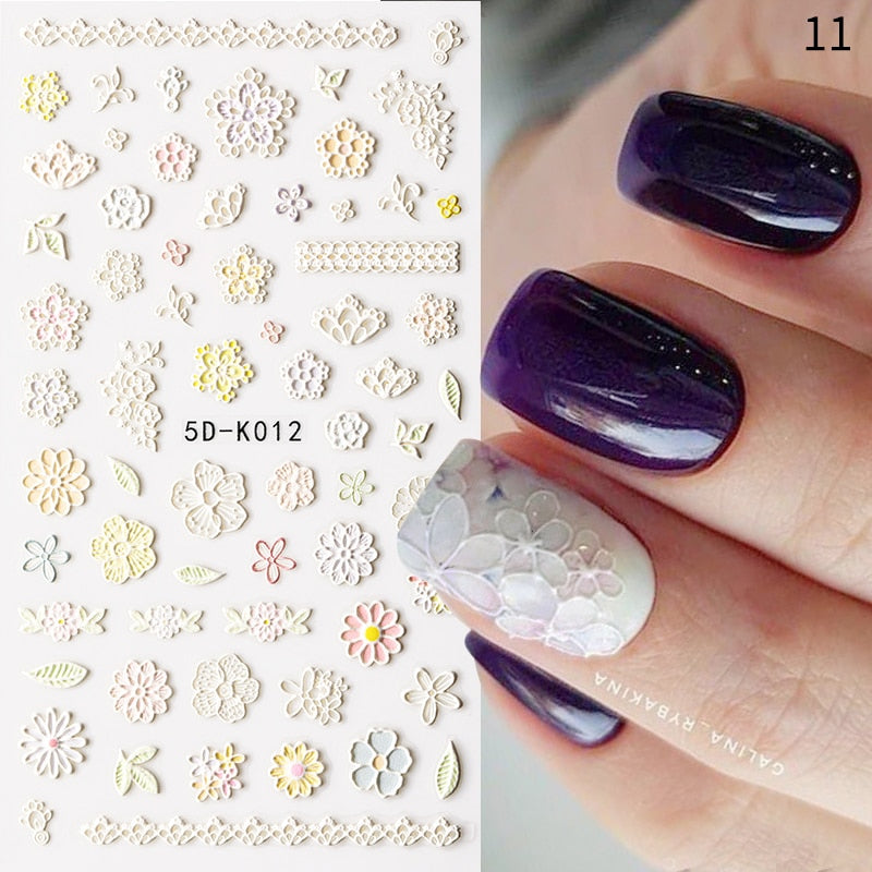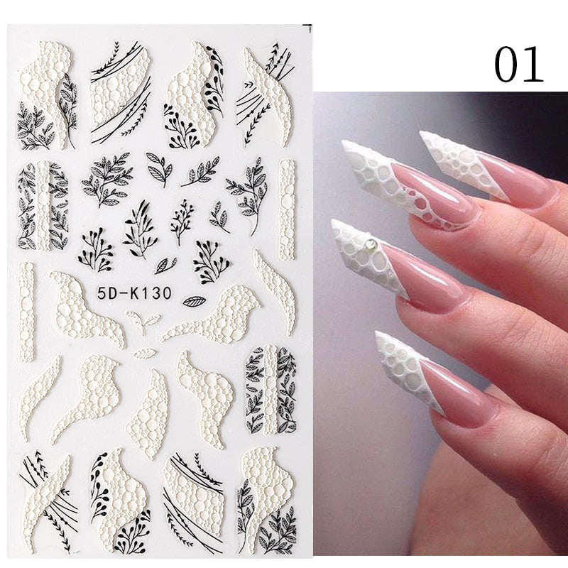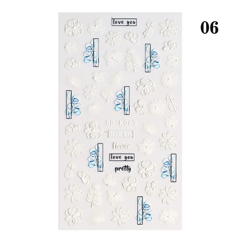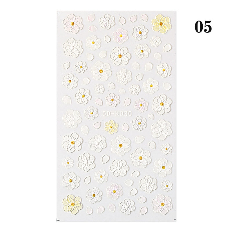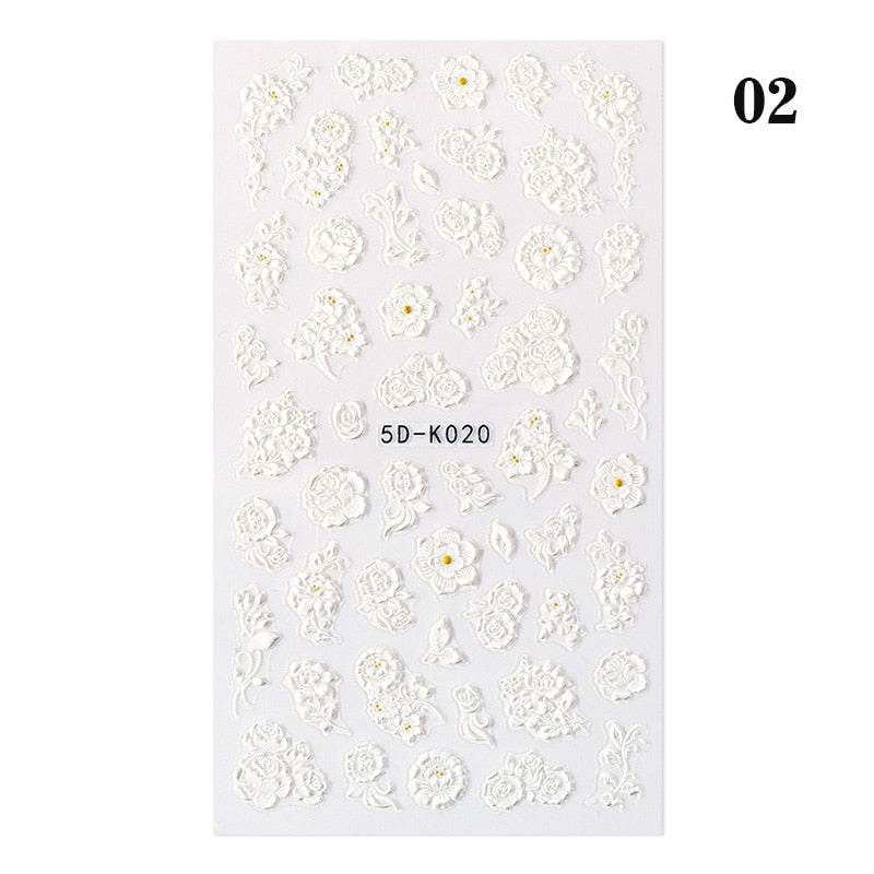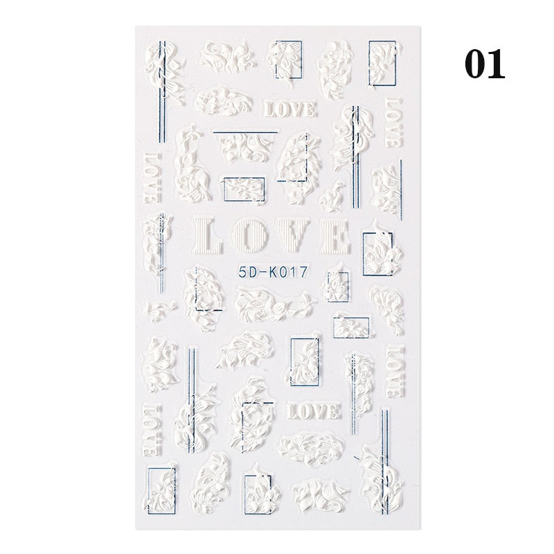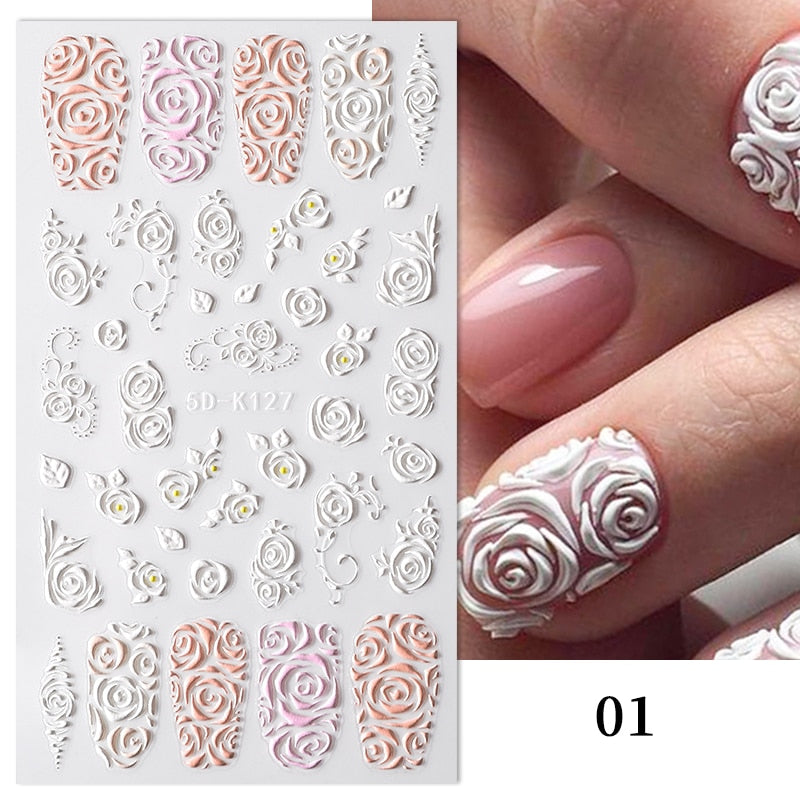 1PC French 5D Nail Sticker Embossed Flower Bubble Pattern Self-Adhesive Slider Wedding Design Nails Decals Nail Art Decoration-Nail Inspo