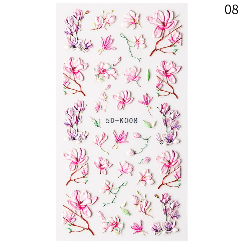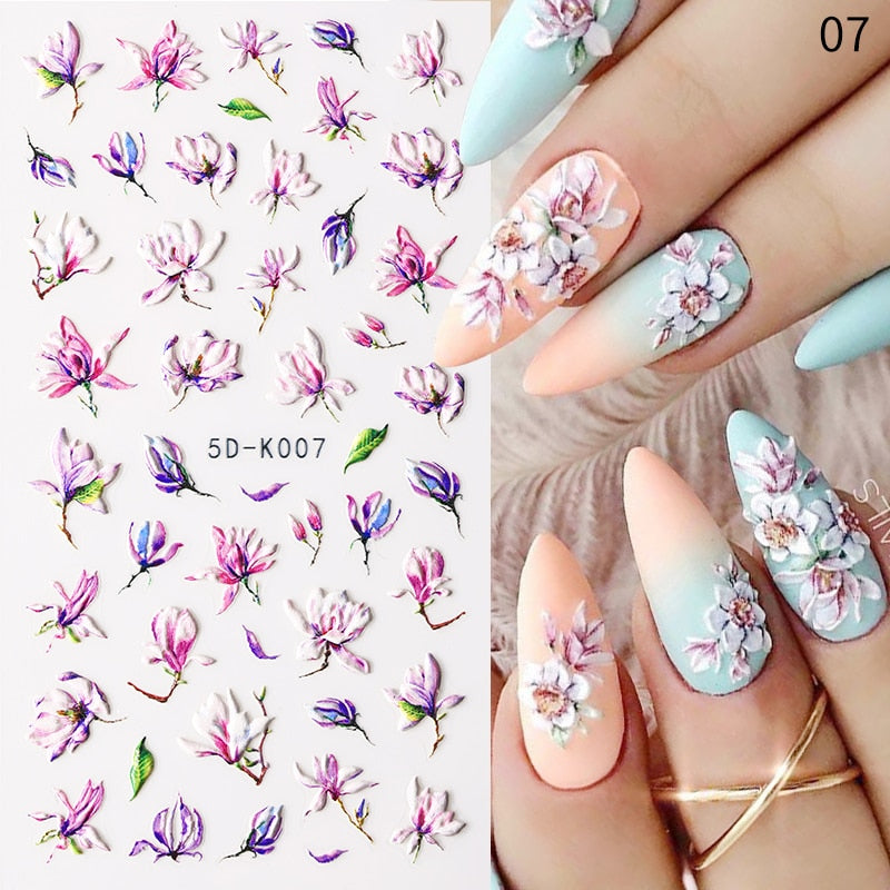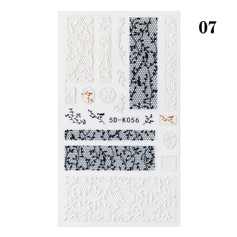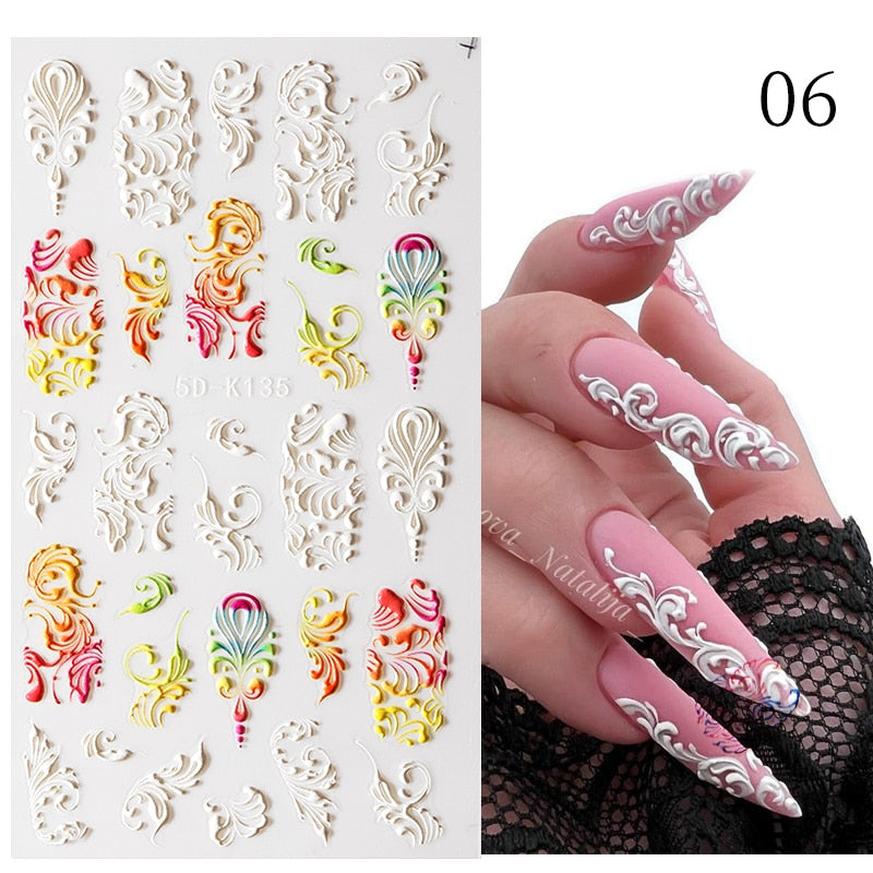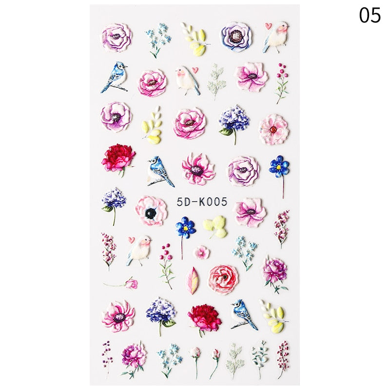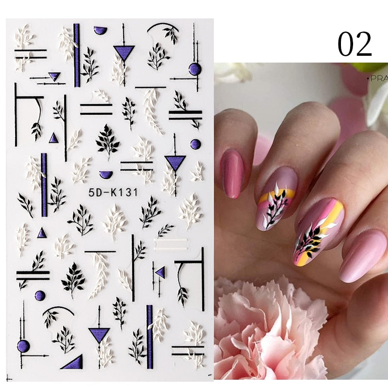 1PC French 5D Nail Sticker Embossed Flower Bubble Pattern Self-Adhesive Slider Wedding Design Nails Decals Nail Art Decoration-Nail Inspo