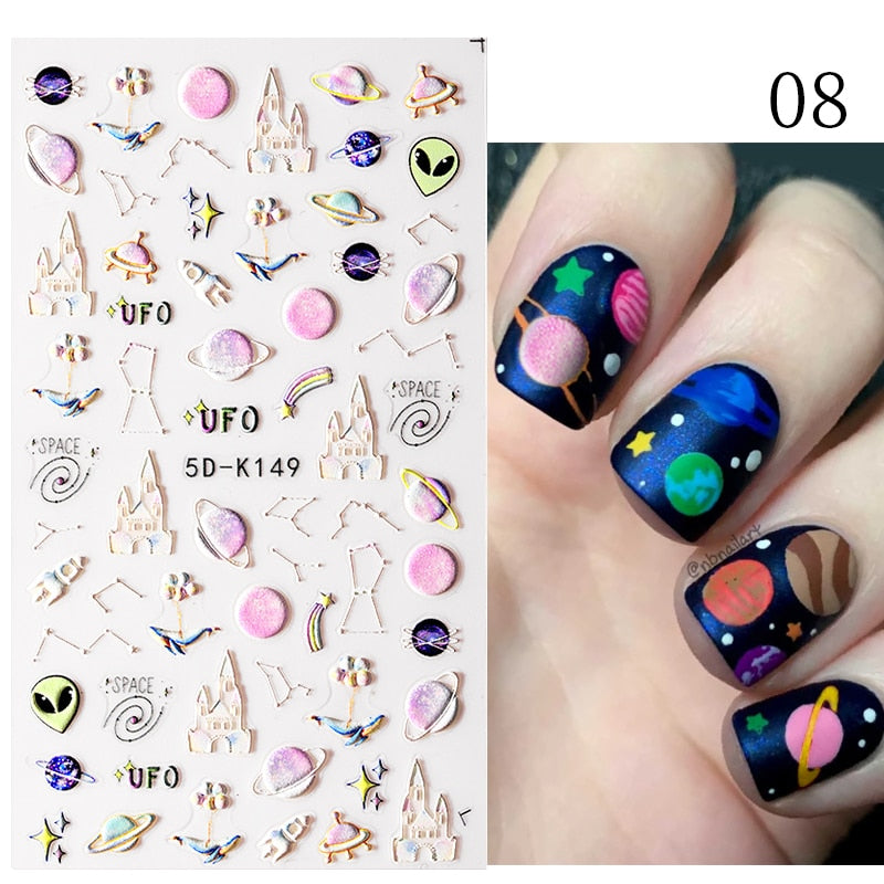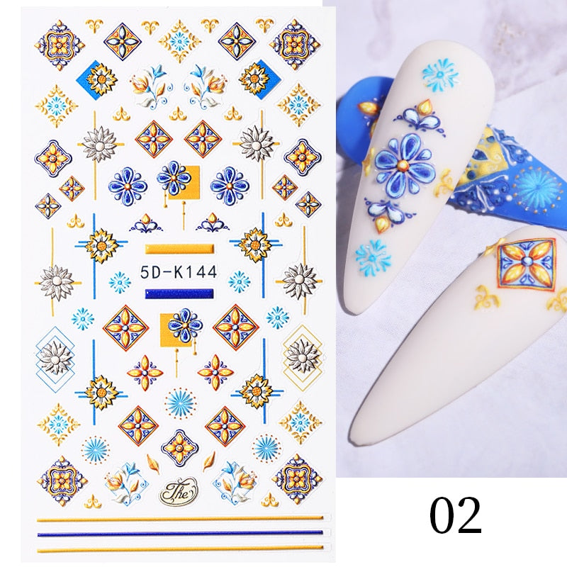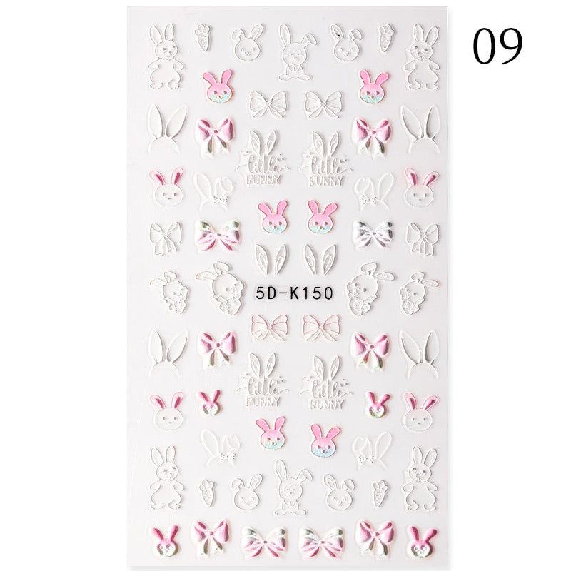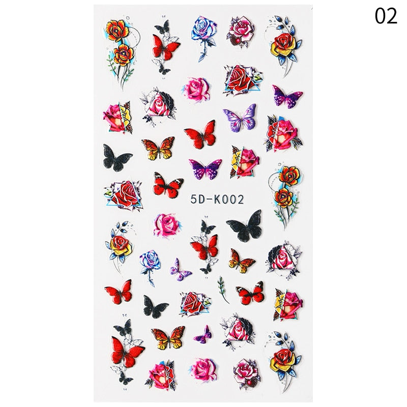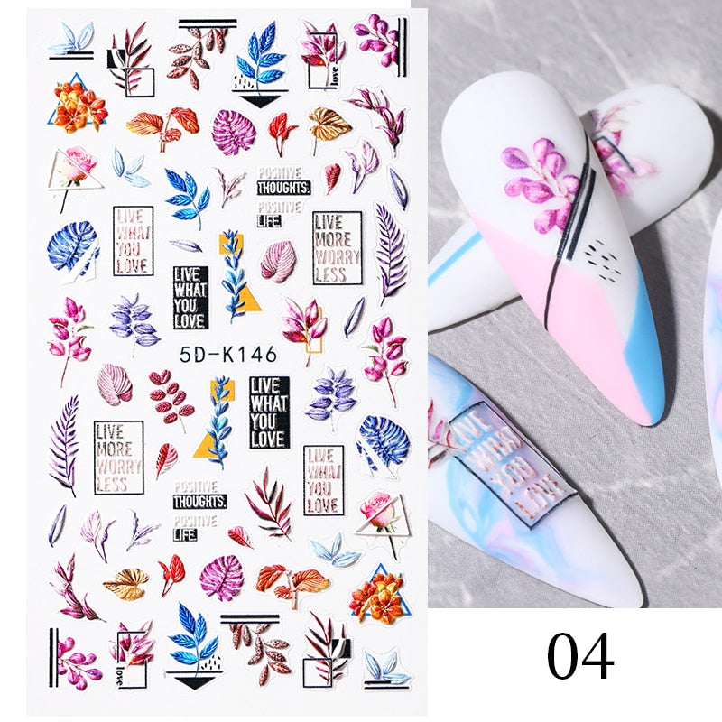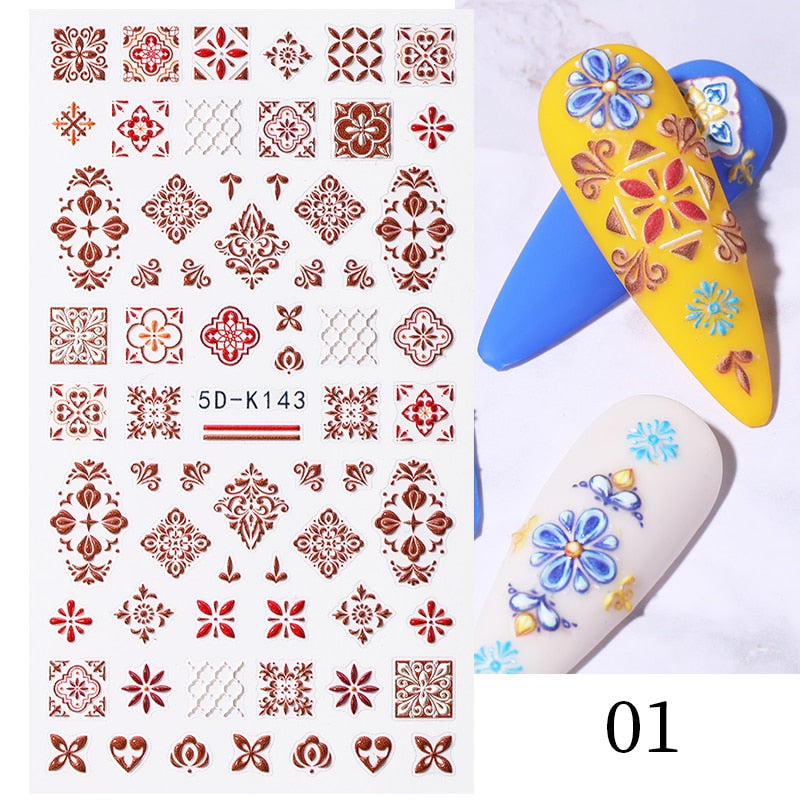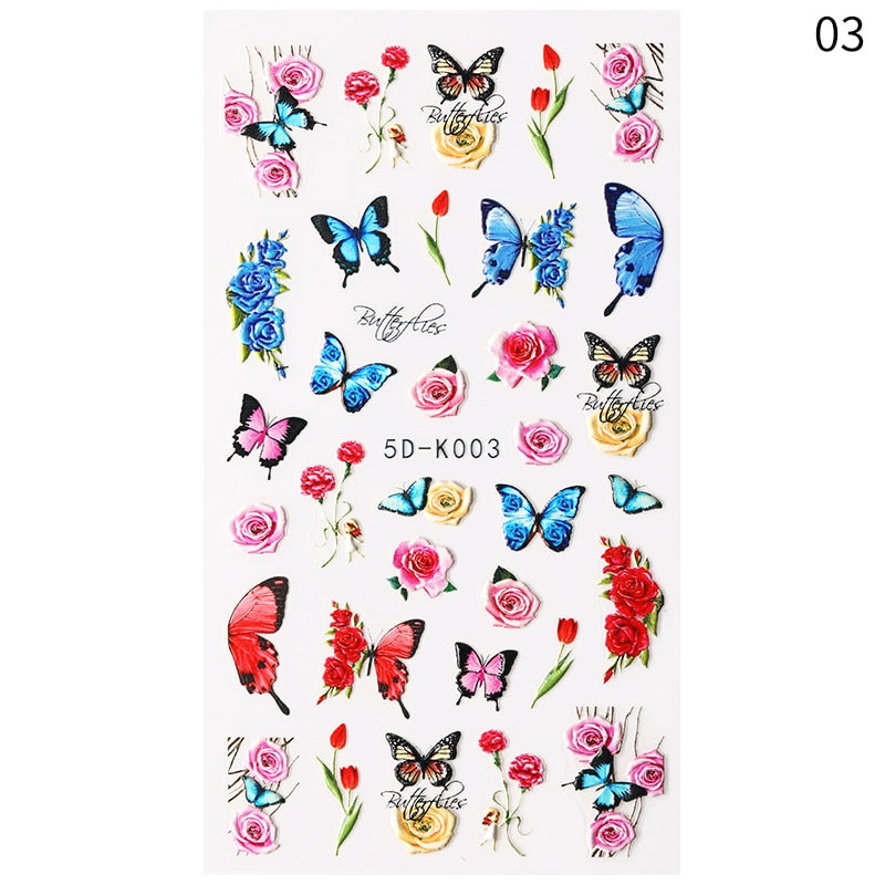 1PC French 5D Nail Sticker Embossed Flower Bubble Pattern Self-Adhesive Slider Wedding Design Nails Decals Nail Art Decoration-Nail Inspo