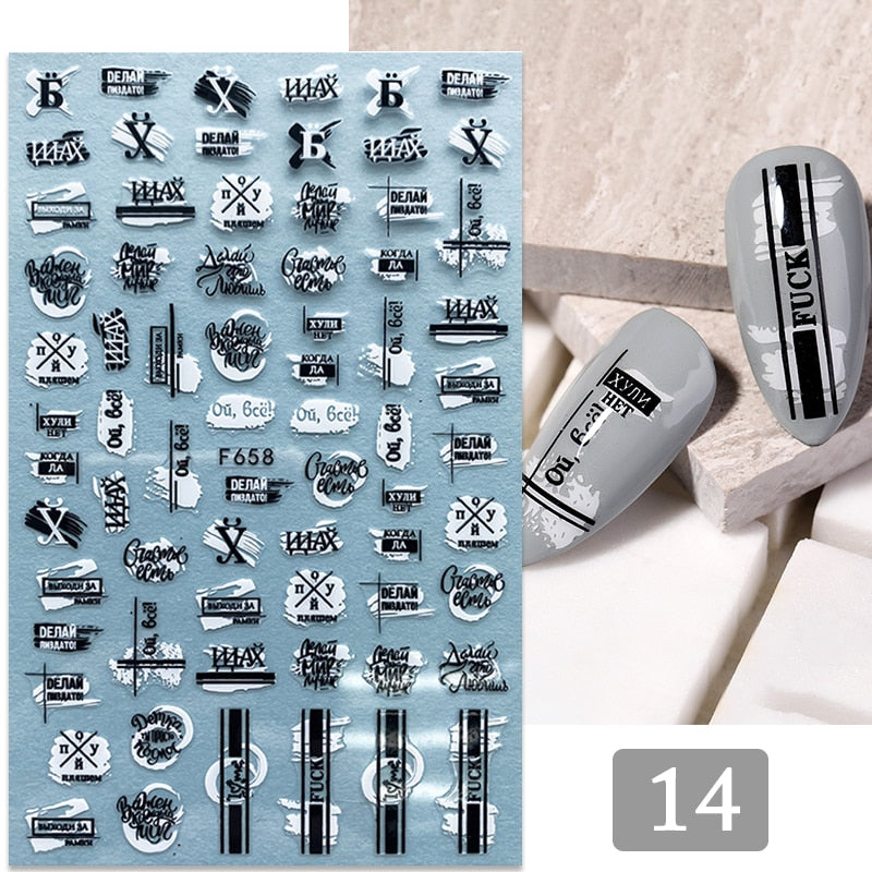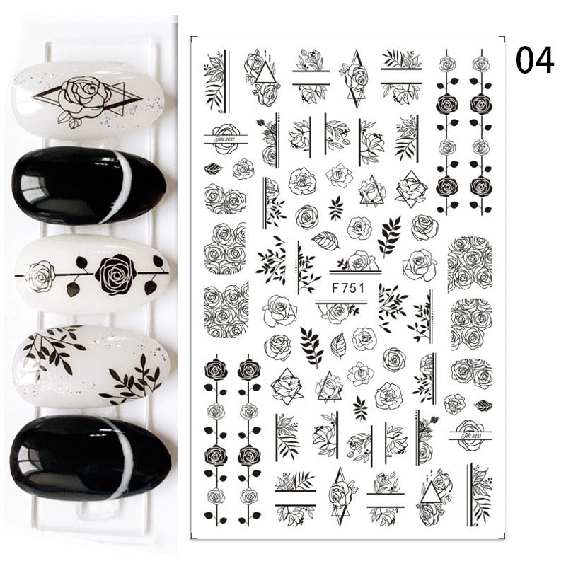 1PC Gold Black Bronzing Leaves Tree 3D Nail Sticker Iridescent Geometrics Lines Adhesive Transfer Sticker DIY Nail Decoration-Nail Inspo