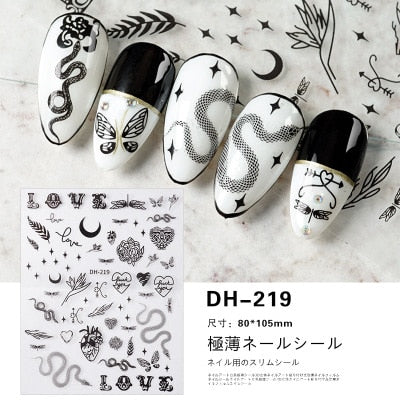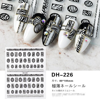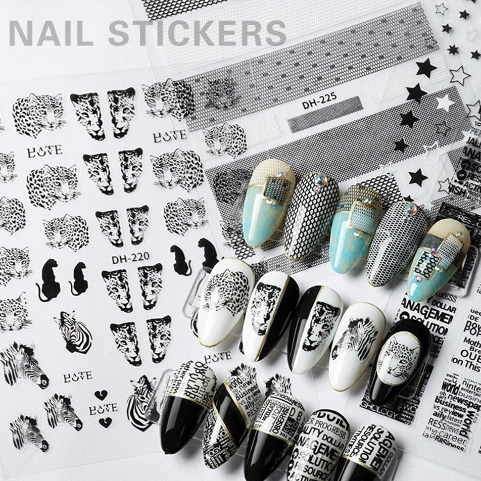 1PC Hollow 3D Nail Stickers Black White Wild Leopard Snake Star Letter Design Adhesive Decals Nail Art Decoration Tip Slider New-Nail Inspo
