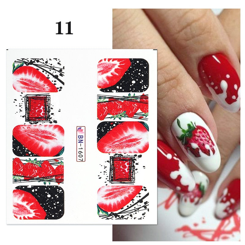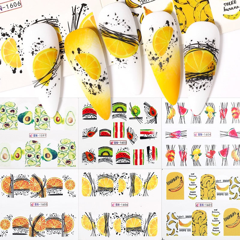 1PC Lemon Banana Nail Water Decals Watermelon Avocado Fruit Flower Leaf Water Transfer Sliders Nail Stickers For Nails Manicures-Nail Inspo