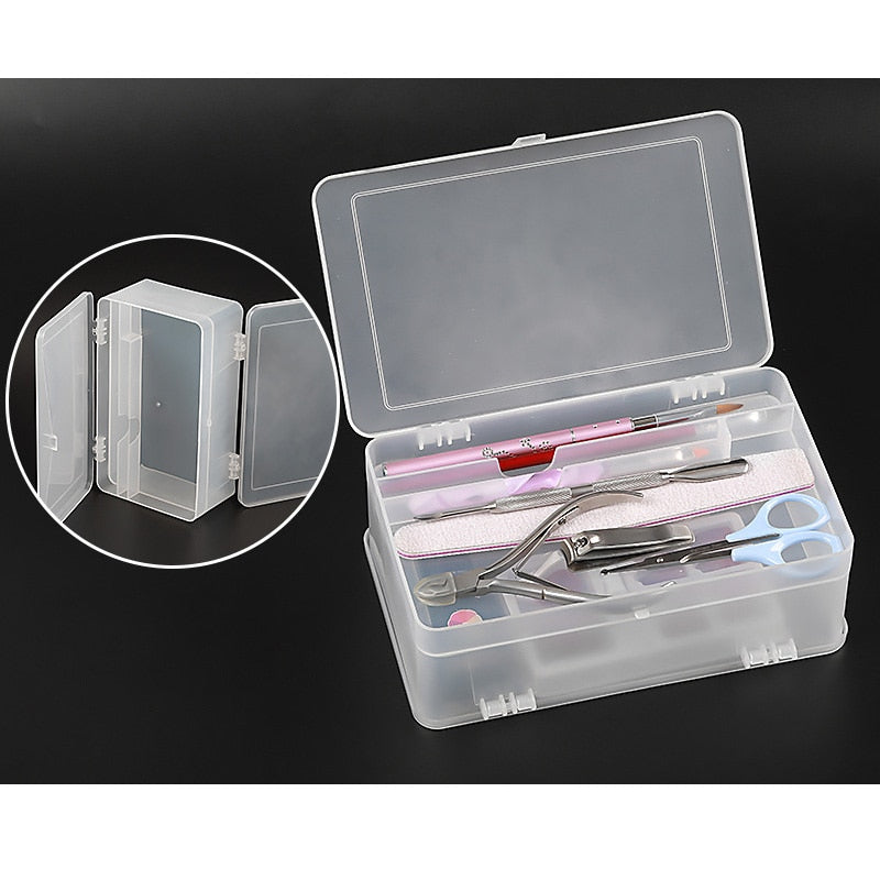 1Pc Rectangle Double-layer Nail Art Tool Empty Storage Box Tweezers Clippers Pens Polishing Nail Buffer Files Plastic Container-Nail Inspo