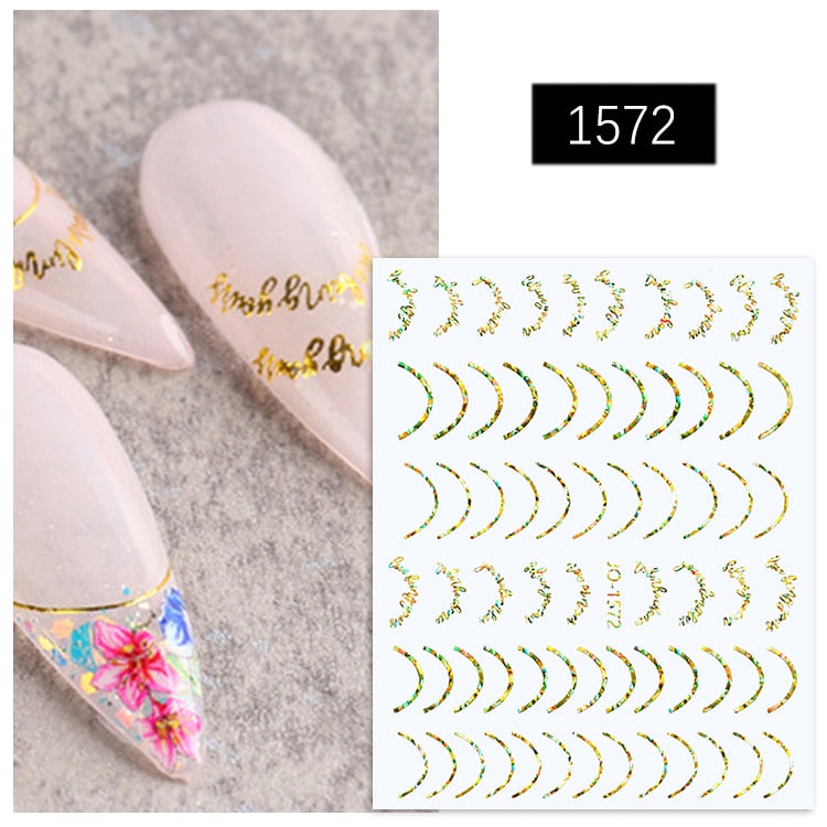 1PC Sliver Striping Tape 3D Nail Stickers Laser Geometry Lines Slider For Nails Gel Polish Decals For Manicures Decoration-Nail Inspo