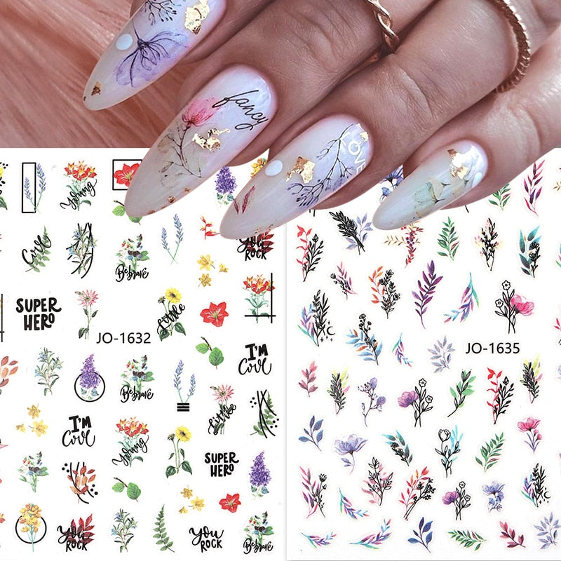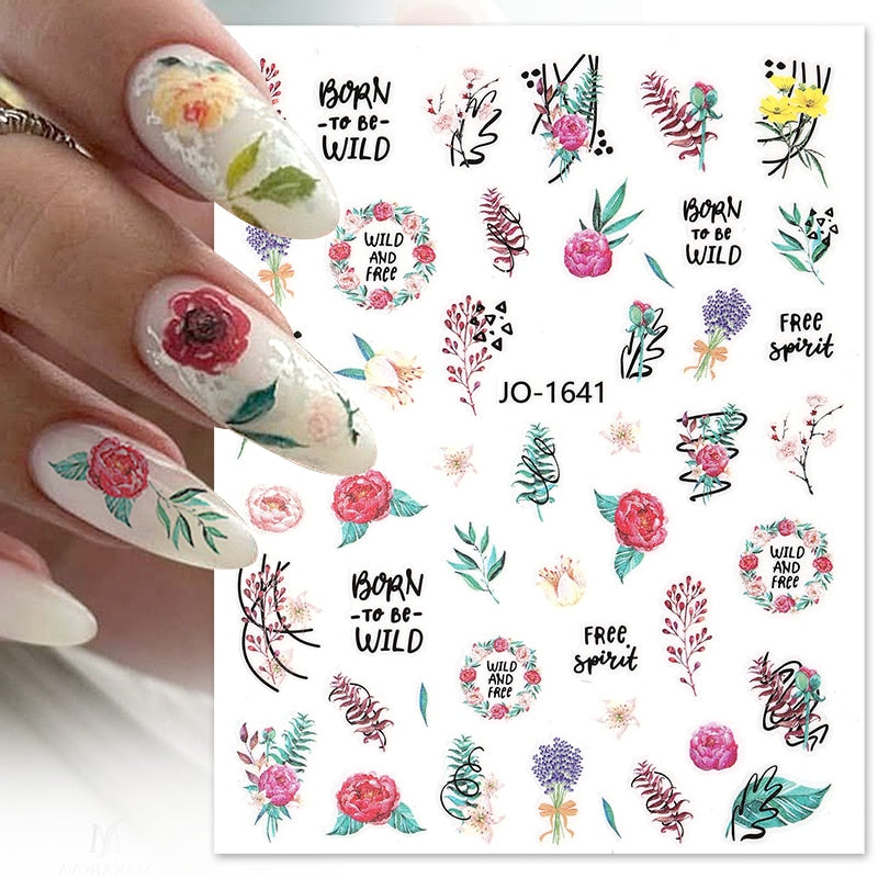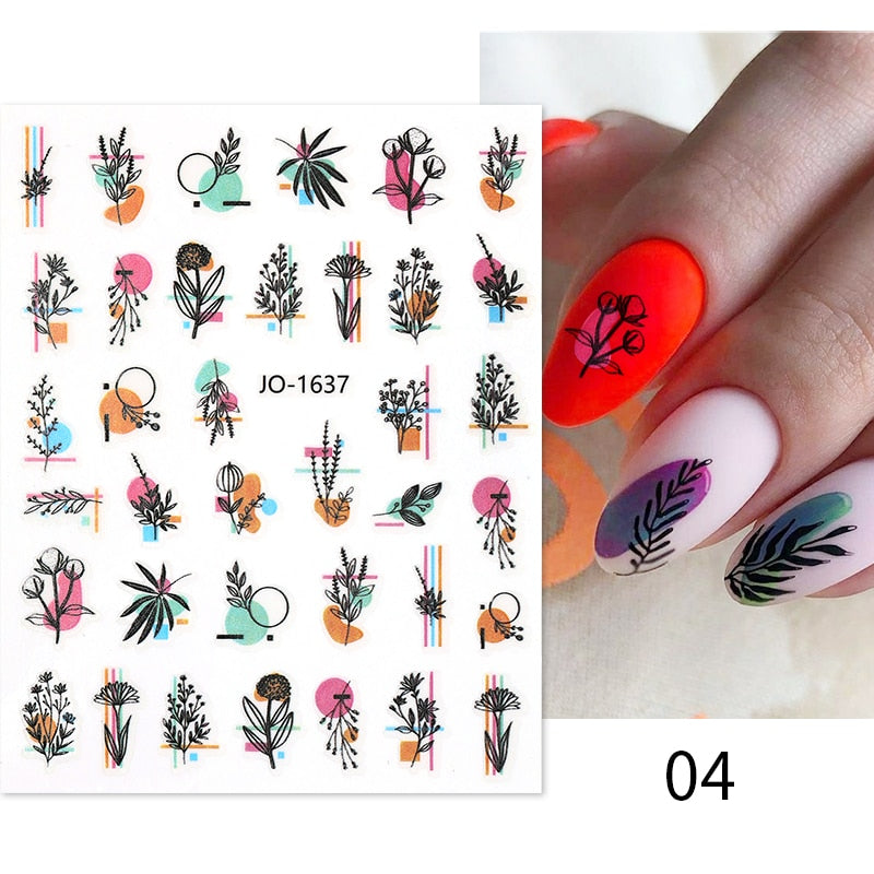 1PC Spring Palm Flowers Leaves 3D Nail Stickers Self-Adhesive Slider Nail Art Decorations Geometry Decals Manicure Accessories-Nail Inspo